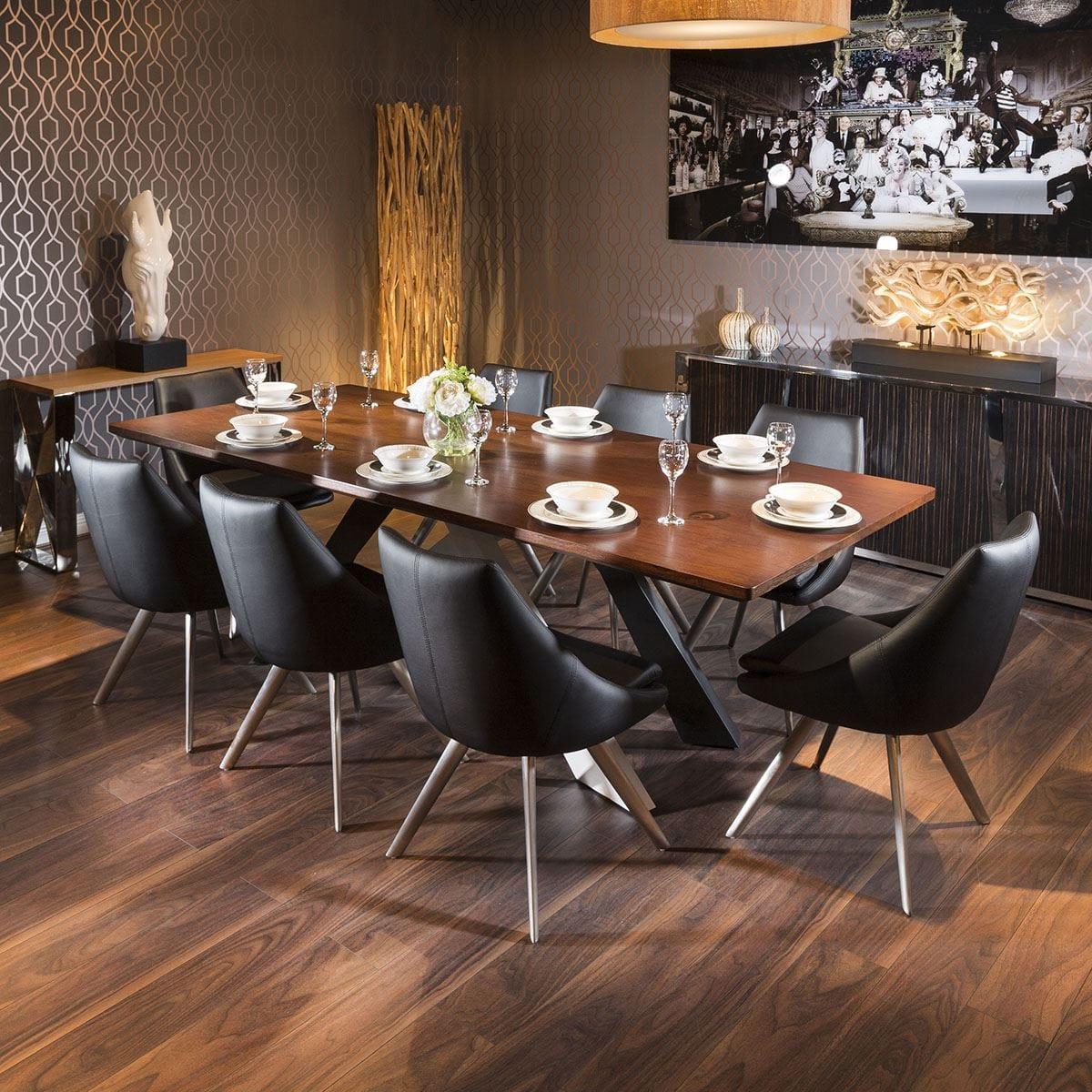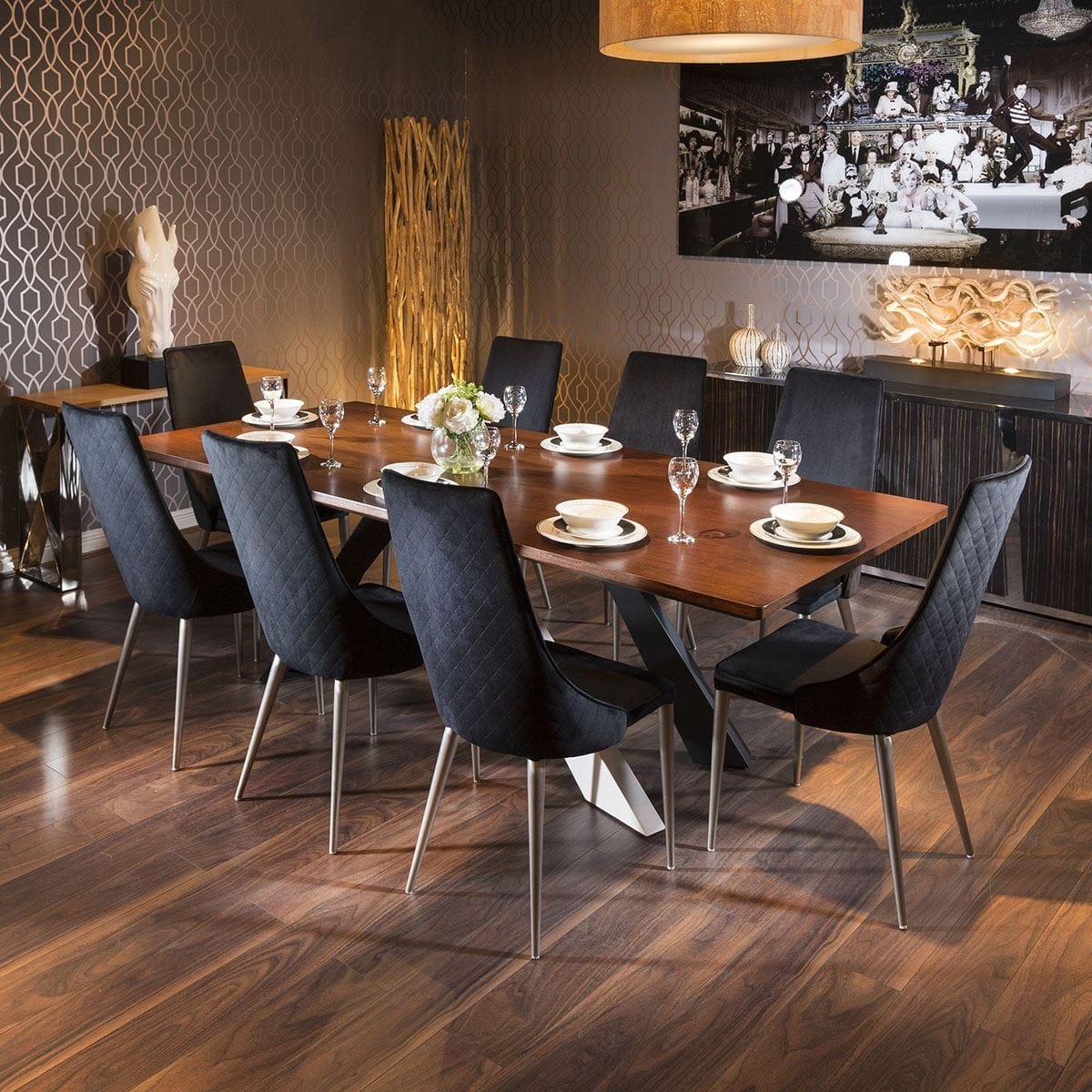 Truly Stunning Quatropi Design Studios 1450 Rectangular Dining Table with Walnut Veneer Top. Special features include beautiful black and white steel legs and thick high end walnut veneer top. Both base and top are extremely heavy and solid. W240cm D110cm H75cm Modern Design Premium Quality Furniture