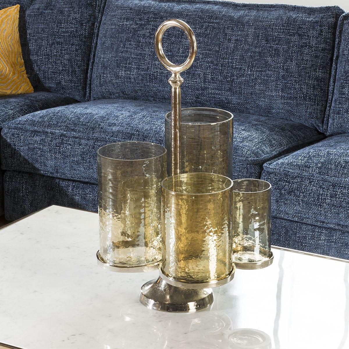 I love this five-candle holder stand for its sleek and contemporary design, which makes it a versatile accessory for a range of interiors. Its silver finish adds a touch of sophistication, making it suitable for both modern and transitional spaces. I recommend styling it on a centred side table or a mantelpiece, where it can serve as a statement piece. For practical arrangements, group candles of varying heights to create visual interest or cluster with lush greenery or decorative objects for a layered look. It works particularly well in settings that lean towards minimalist, chic, or eclectic decor, offering both functional lighting and a stylish focal point.