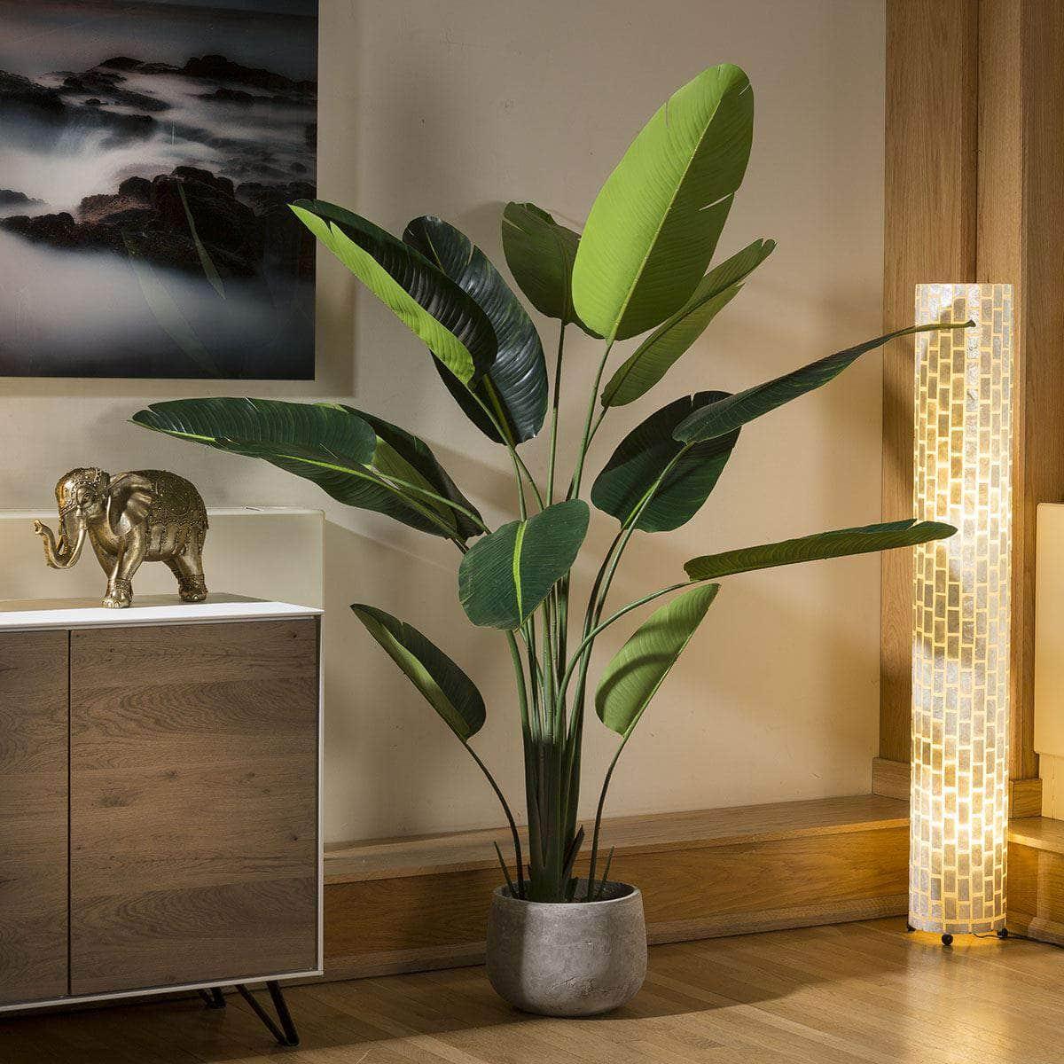 This giant palm makes a fantastic statement piece in both modern and transitional interiors, thanks to its impressive height and realistic foliage. I love how it adds a touch of greenery without the maintenance issues of a real plant, making it ideal for busy spaces or areas with limited natural light. When styling with this palm, consider placing it in open corner spaces or next to taller furniture to highlight its height. It works well in living rooms, reception areas, or office environments where creating an inviting yet low-maintenance green feature is key. To optimise its visual impact, pair it with minimalist pots or planters to keep the look streamlined, and avoid overcrowding with other tall items to let it truly stand out.