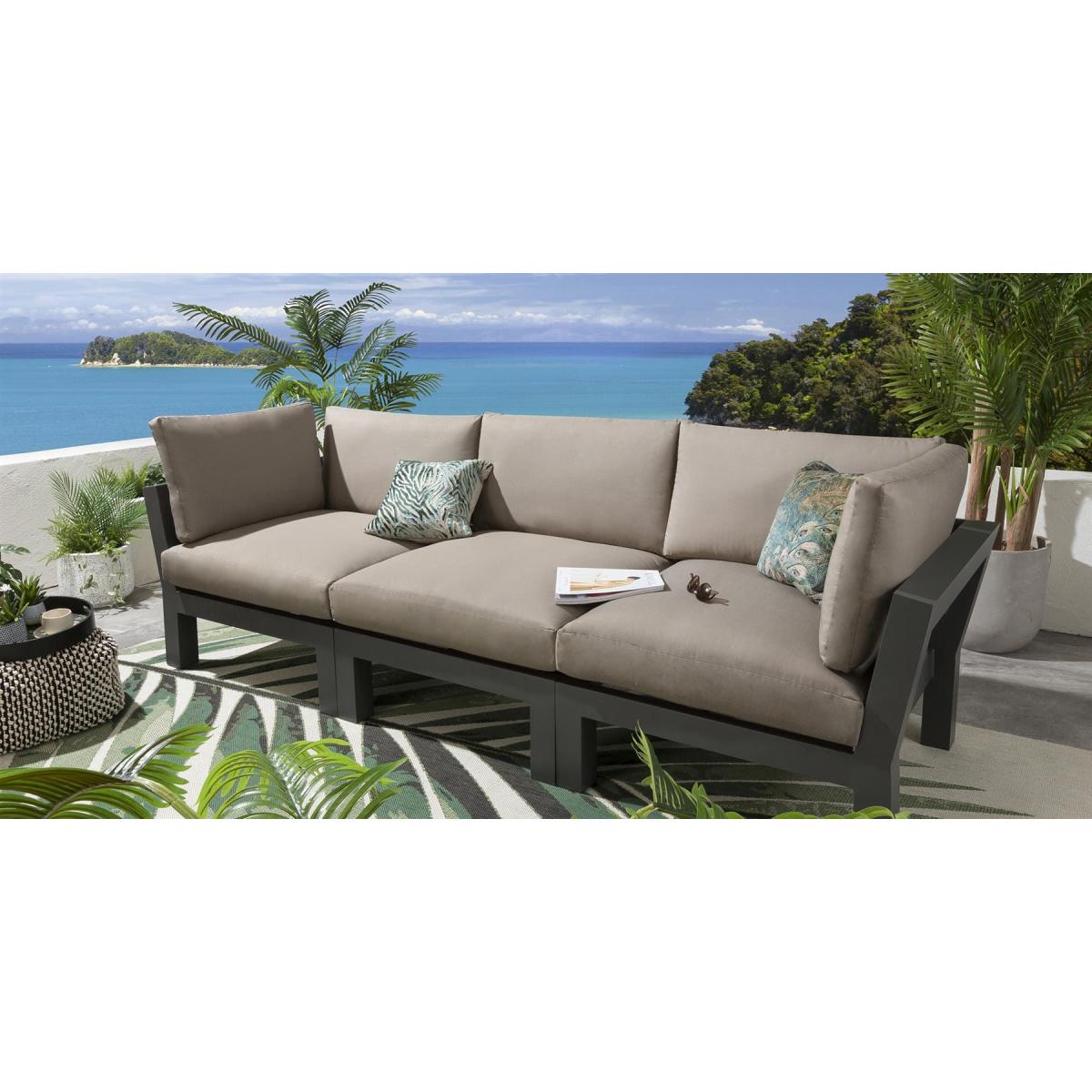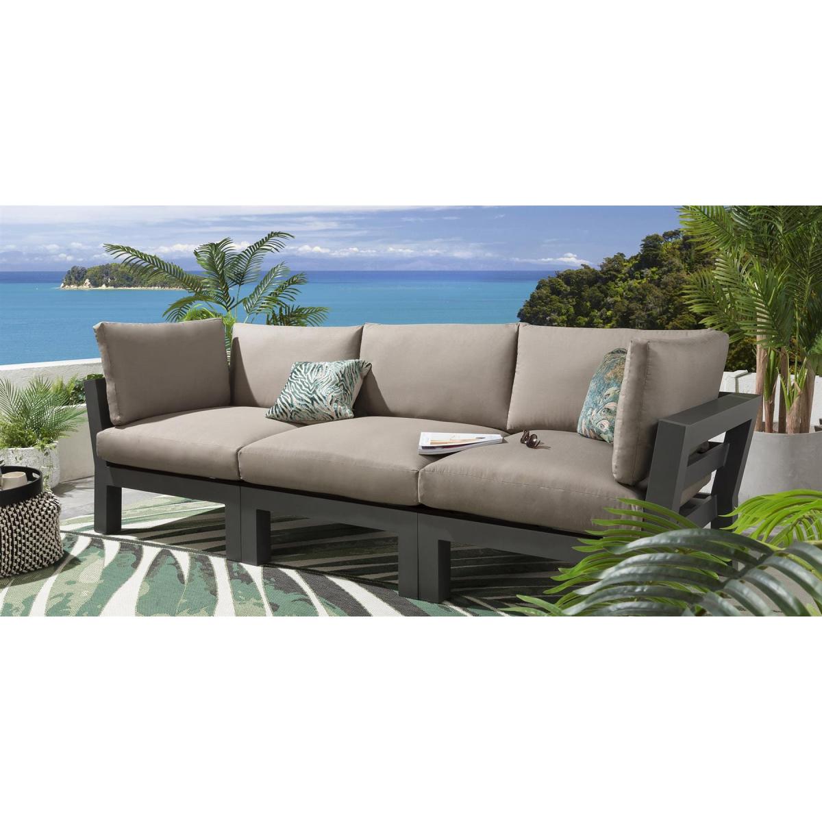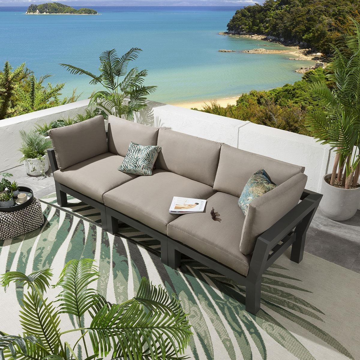 The Quatropi Zara Extra Large Garden Modular Sofa Range is the perfect choice for bringing style, comfort and luxury to your outdoor space. Featuring huge, deep, soft cushions that provide unrivaled levels of comfort, this range is designed to provide maximum comfort and relaxation. The oversized aluminum frame ensures durability and stability, while the weather covers offer further protection from the elements. With many sectional pieces enabling customers to design the ideal shape and size sofa for their patio, this range provides the perfect solution to creating a beautiful outdoor living space. Whether you're entertaining friends and family, or just simply want to relax outdoors, the Quatropi Zara Extra Large Garden Modular Sofa Range is the perfect choice. Spread the cost our with interest-free finance options. Minimum spend applies. W268cm D93cm H91cm Set includes 2 x corner sections, 1 x middle sections Modular design