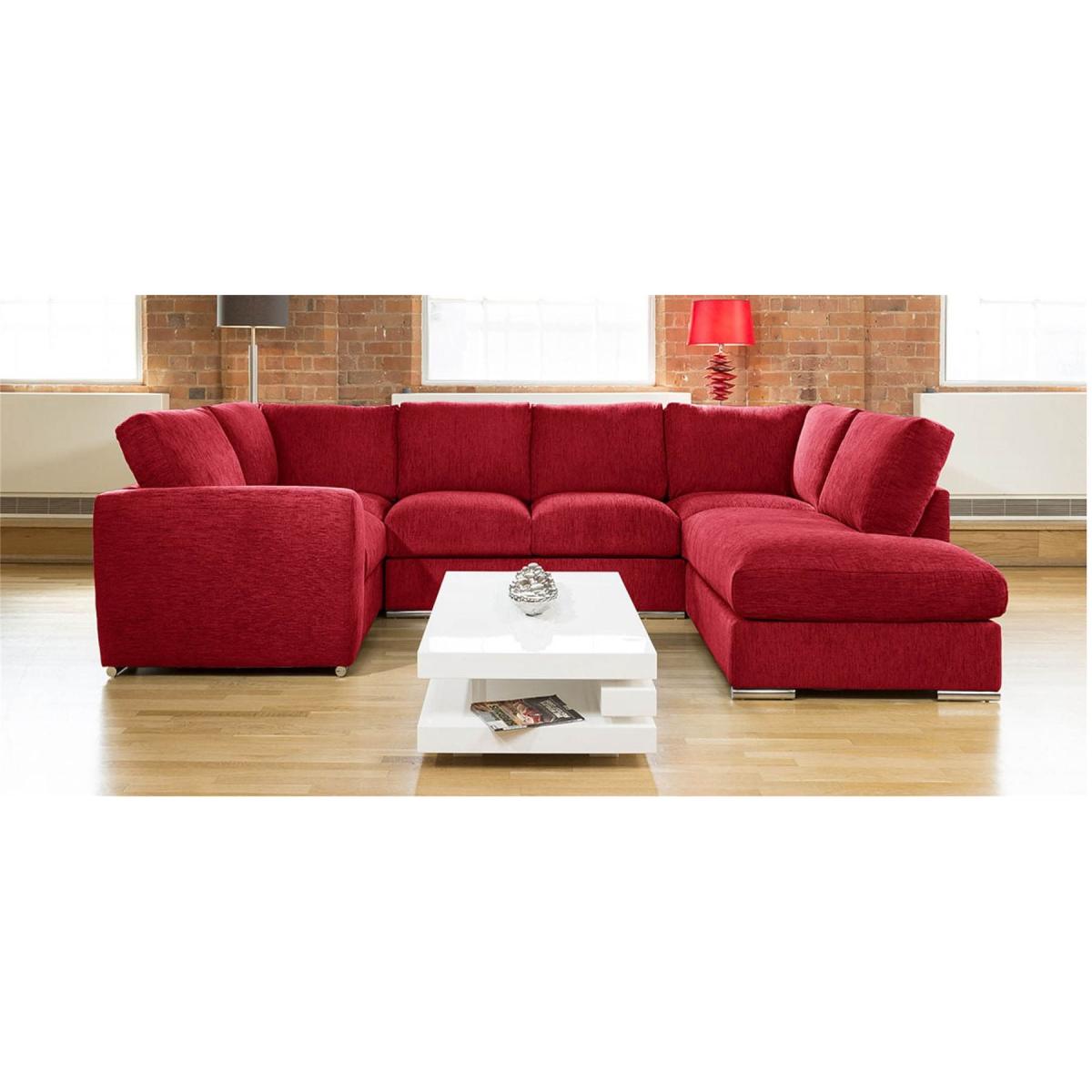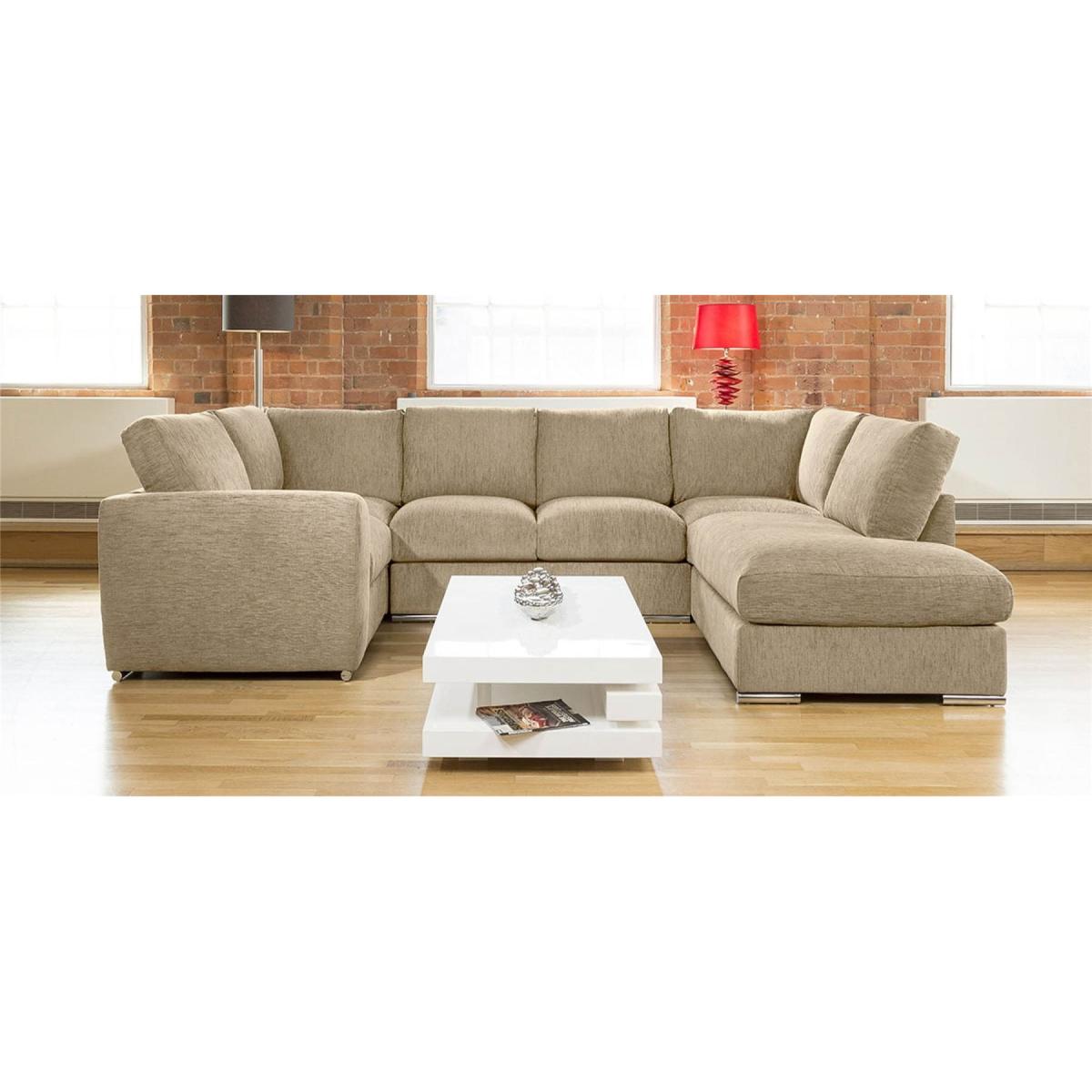 Huge designer U shaped corner sofas, choose your fabric, choose your style. Available with coordinating headrests, footstools and pillow and scatter cushions. The incredible comfort is derived from superior serpantine springs in the seat frame, the best quality foam base cushions, soft hollow fibre back cushions and importantly ergonomically engineered proportions that will remain comfy for prolonged periods of sitting. One of over 13 configurations within the Gala range, this particular large "U" shape set will seat up to 6 people comfortably and has closed arm ends. Other features include super-wide thick padded arms, cylindrical stainless steel feet and the option to add extra pieces if required.. All this is built on a strong solid wood frame. Matching or contrasting headrests, scatter cushions, pillow cushions and stools can be added also for an additional cost. W330cm D210cm H95cm Best Selling Range All dimensions are approximate due to fabric differences. Please allow tolerance of +/- 5cm to any direction