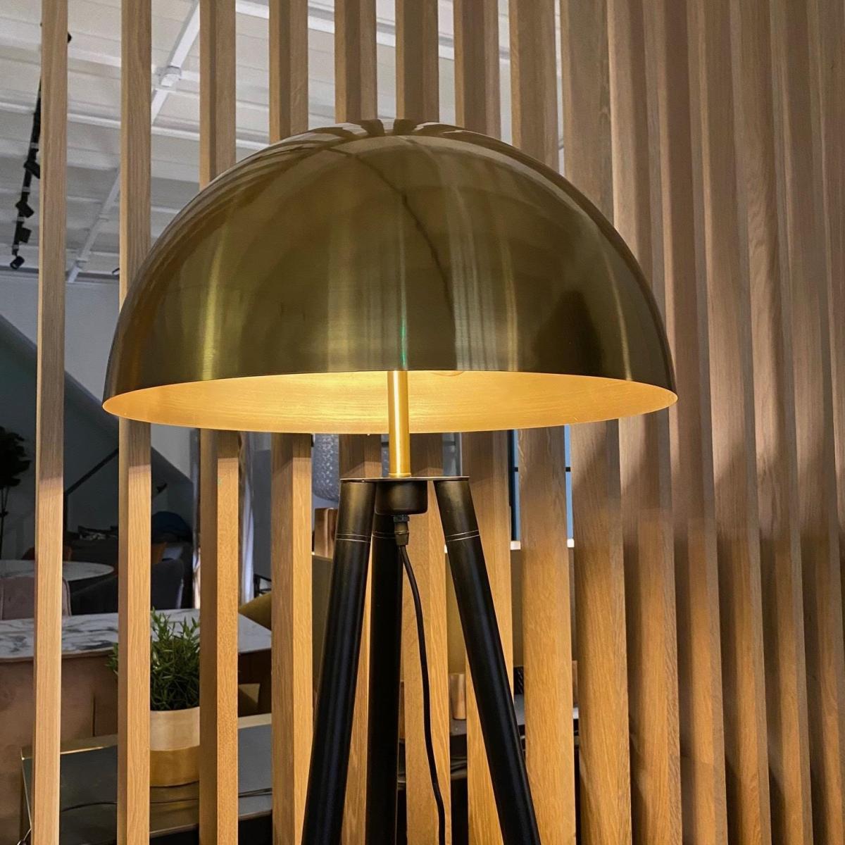 Quatropi Large Tripod Floor Lamp 165cm Gold Shade - Black Legs