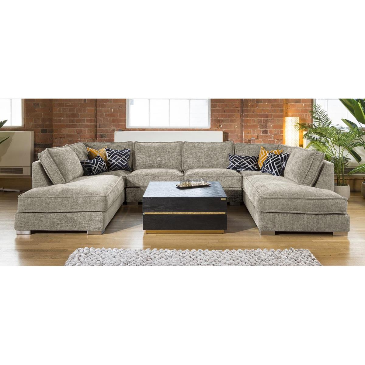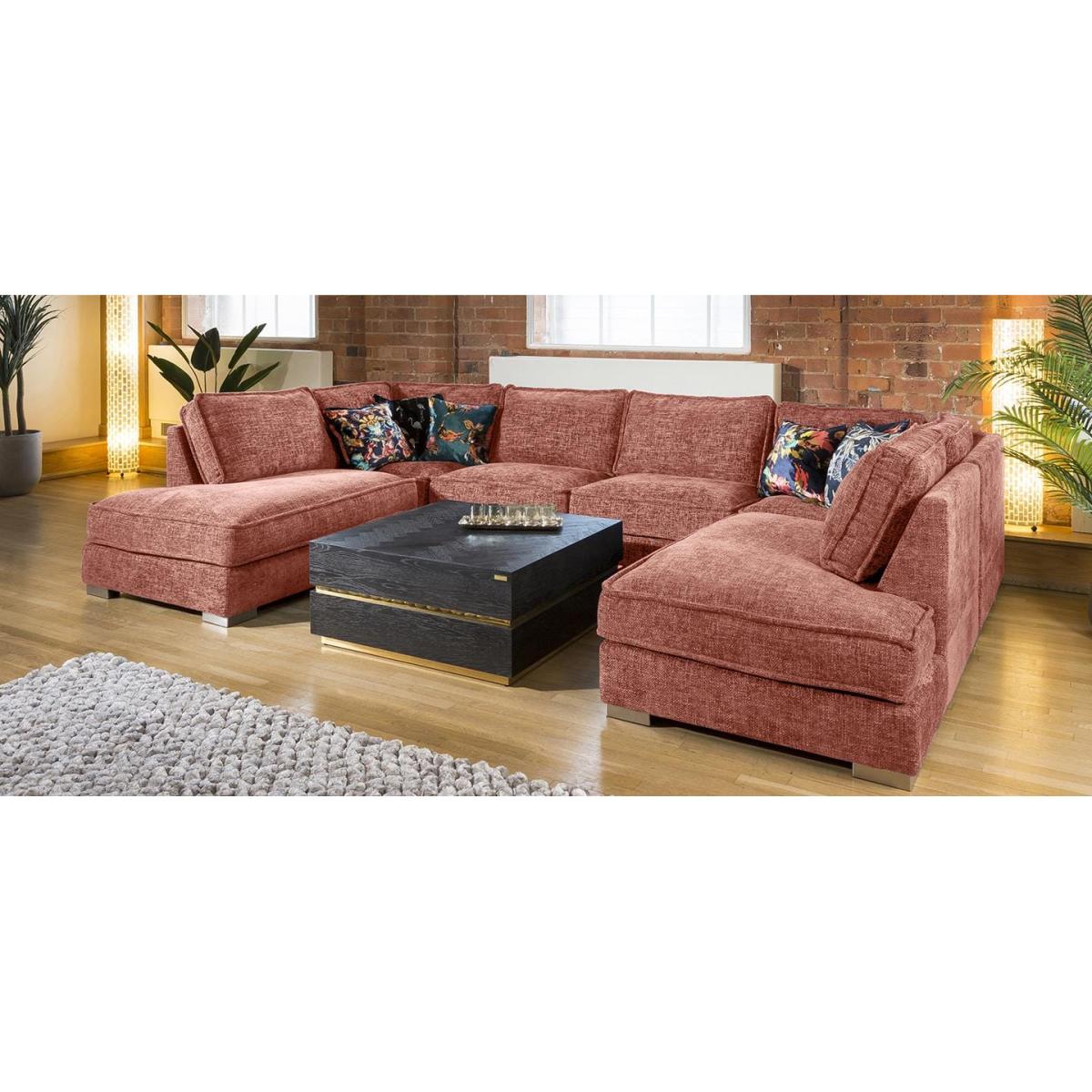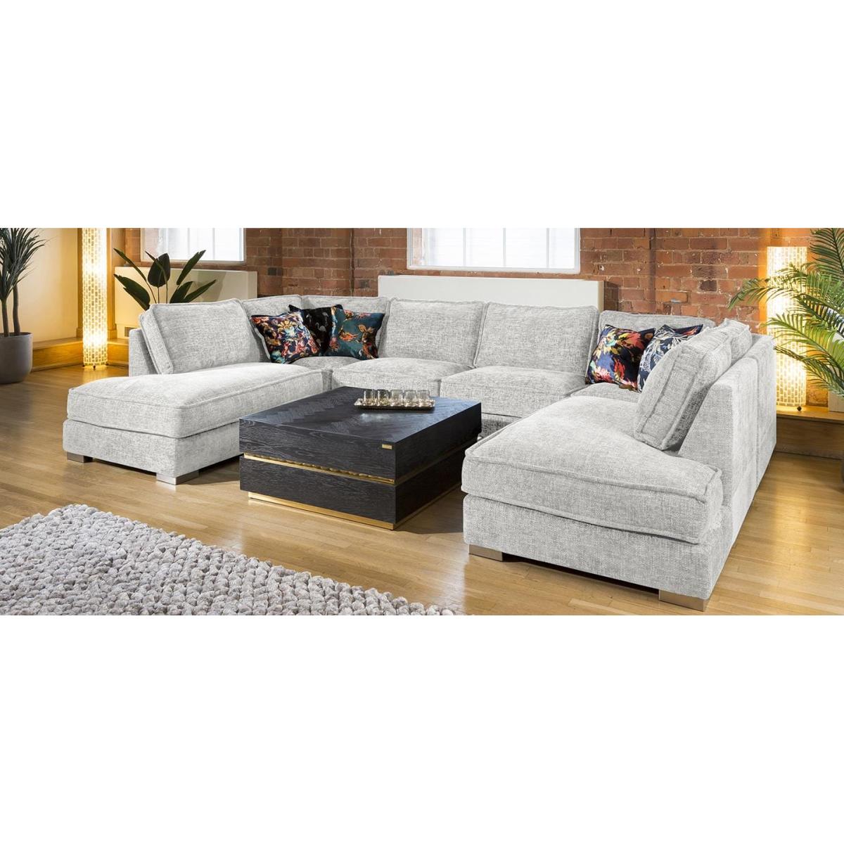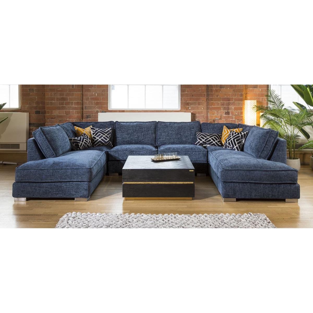 The exquisite Lexci 6 seater settee is unique to Quatropi. The contemporary sofa can comfortably seat up to 6 people and would look perfect in any living area or cinema room. The Lexci 8 sofa is a great addition to the Lexci range and would be complemented by one of the matching Lexci armchair. This sofa is fully customisable with a full range of fabrics & colours to choose from. Beautiful design with soft padded arms, massive corner and U shaped sofa options and two different sizes of footstools. The Lexci range includes large back pillow cushions that doesn't only provide a stunning look, they also give versatility to ensure your comfort whatever your size or seating position. All pieces are superb quality with exceptional attention to detail especially the French stitched seams. Some of the great features of the Lexci range include oversize sections including corners, middle sections, footstools and Chaise ends, striking brushed stainless feet, thick French seams and soft back cushions give a completely unique contemporary look. Built with pillow soft hollow-fibre and high density foam cushion fillings, plump the back cushions occasionally to keep them looking fabulous. The Lexci range is completely modular so you can add and take away pieces as you need. Let our experts help you find the exact size and shape to fit your space perfectly. W355cm D220cm H83cm Soft Sit Cushions All dimensions are approximate due to fabric differences. Please allow tolerance of +/- 5cm to any direction