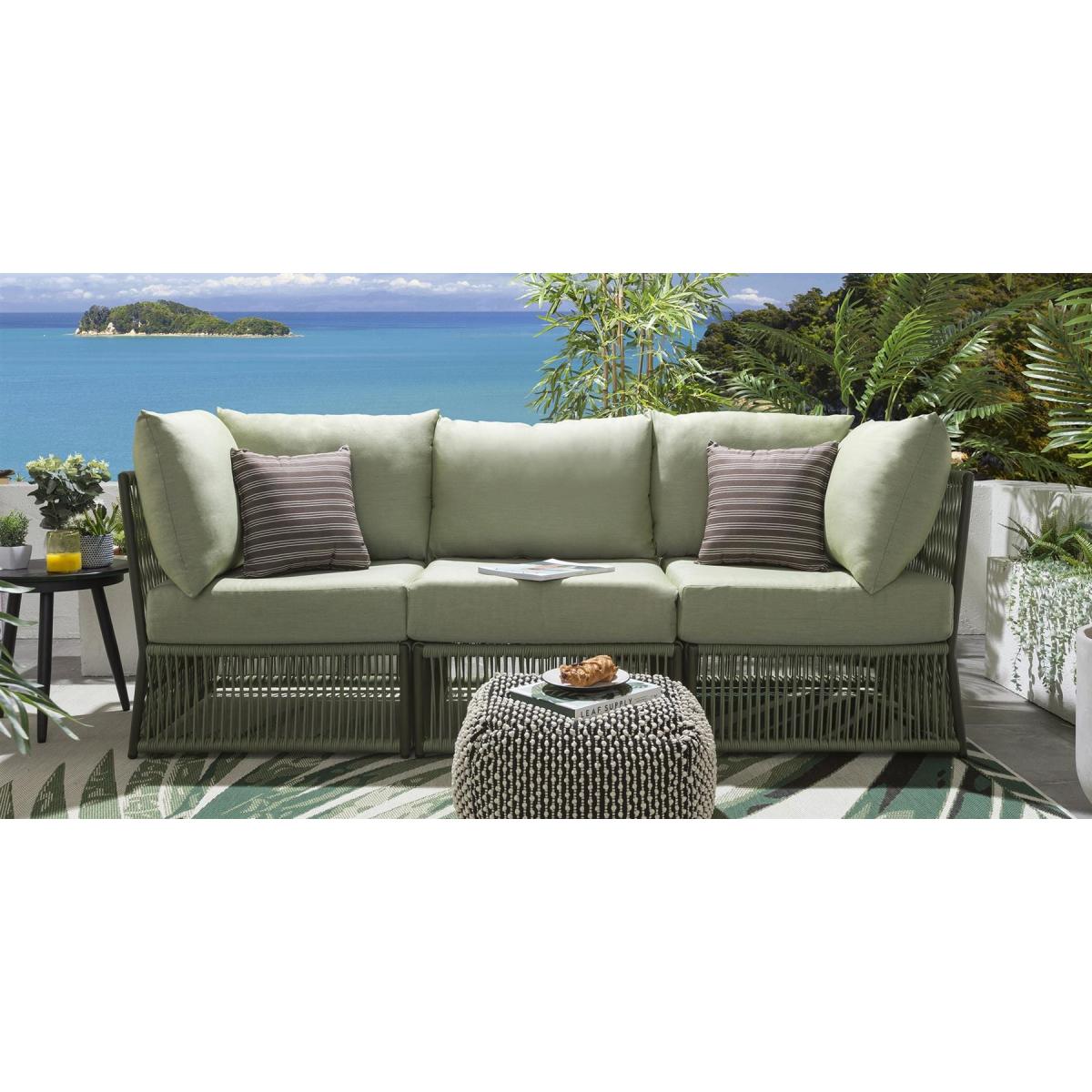 The Quatropi Luxury Cole Modular Outdoor Sofa Range is the perfect choice for outdoor relaxation and entertaining. Featuring luxurious deep cushions, this range of outdoor sofas is designed for maximum comfort and style. The frames are made from lightweight, durable aluminum, which is corrosion-resistant and perfect for withstanding the elements in any season. The sofas come in two color options ' blue or green ' and feature a 5-year warranty. The fabric used is weather-resistant and will remain looking good for years to come, even in the harshest climates. The cushions are filled with a high-grade foam for maximum comfort, and come with winter and rain covers for added protection. The Quatropi Luxury Cole Modular Outdoor Sofa Range is the perfect choice for anyone looking to create a stylish and comfortable outdoor seating area. The Cole Modular Outdoor Sofa Range from Quatropi is perfect for al-fresco dining, entertaining, or simply relaxing in the garden. The modular design and range of sizes make it easy to configure a seating area that suits your needs, and the contemporary styling ensures that it will look great no matter what the occasion. W218cm D74cm H75cm Set Includes 2 x corner sections, 1 x middle sections Free Winter Cover