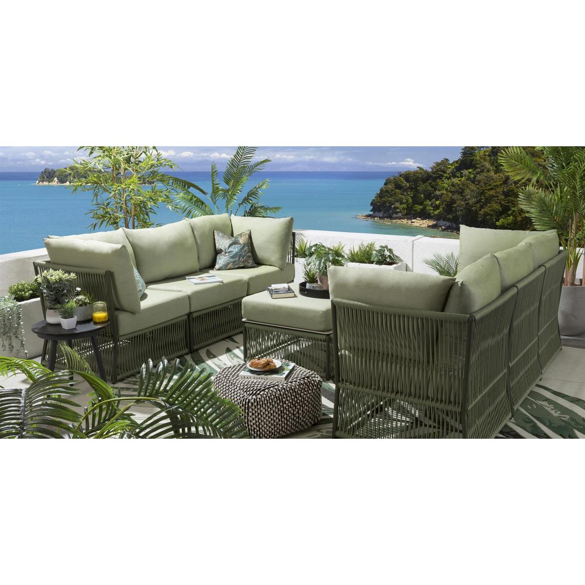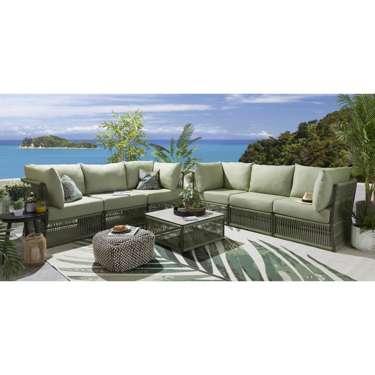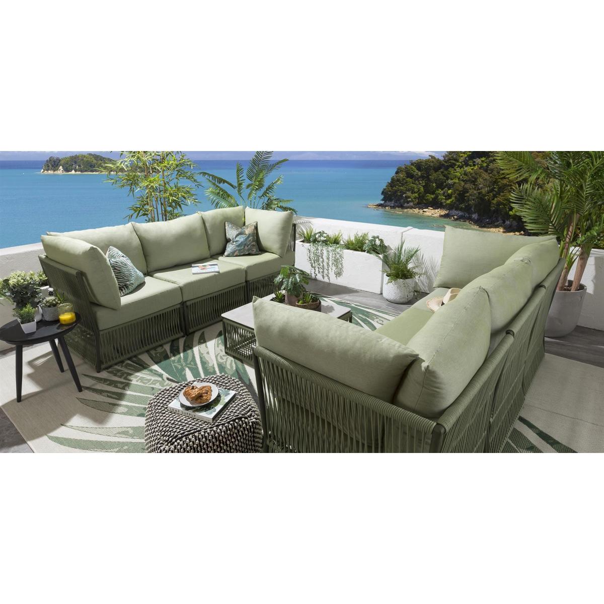 The Quatropi Luxury Cole Modular Outdoor Sofa Range is the perfect choice for outdoor relaxation and entertaining. Featuring luxurious deep cushions, this range of outdoor sofas is designed for maximum comfort and style. The frames are made from lightweight, durable aluminum, which is corrosion-resistant and perfect for withstanding the elements in any season. The sofas come in two color options ' blue or green ' and feature a 5-year warranty. The fabric used is weather-resistant and will remain looking good for years to come, even in the harshest climates. The cushions are filled with a high-grade foam for maximum comfort, and come with winter and rain covers for added protection. The Quatropi Luxury Cole Modular Outdoor Sofa Range is the perfect choice for anyone looking to create a stylish and comfortable outdoor seating area. The Cole Modular Outdoor Sofa Range from Quatropi is perfect for al-fresco dining, entertaining, or simply relaxing in the garden. The modular design and range of sizes make it easy to configure a seating area that suits your needs, and the contemporary styling ensures that it will look great no matter what the occasion. W218cm D288cm H75cm Set Includes 4 x corner sections, 2 x middle sections, 1 x coffee table/footstool Free Winter Cover
