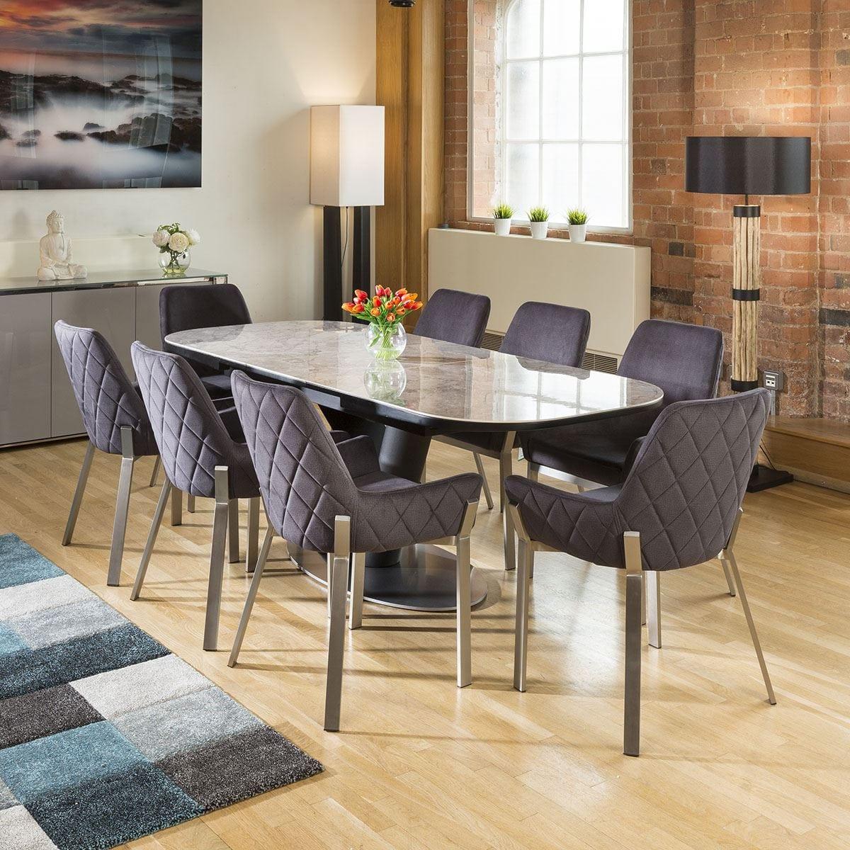 Quatropi Modern 8 Seater Ceramic Extending Dining Set Grey Charcoal
