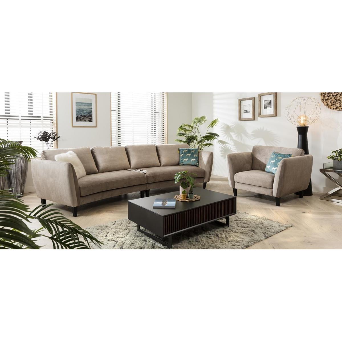 Boasting a today and compact silhouette and a wide, deep seat, this cosy armchair is the perfect mix of traditional design and contemporary style. Upholstered in luxury distressed-look velvet Ombra Beige fabric with sumptuous touch, the Cali Sofa range will make a beautiful addition to your home. Finished with dark wood legs, the simple armchair design blends seamlessly into any home. Quatropi have a wide range of luxury sofas, including modern modular corner sofas, and unique U-shape corner sofas. Our team of experts are ready to assist you with sofa design and fabric questions - use the Live Chat to talk to someone right away! Spread the cost our with interest-free finance options. Minimum spend applies. W110cm D90cm H85cm 15 Year Structural Warranty All dimensions are approximate due to fabric differences. Please allow tolerance of +/- 5cm to any direction