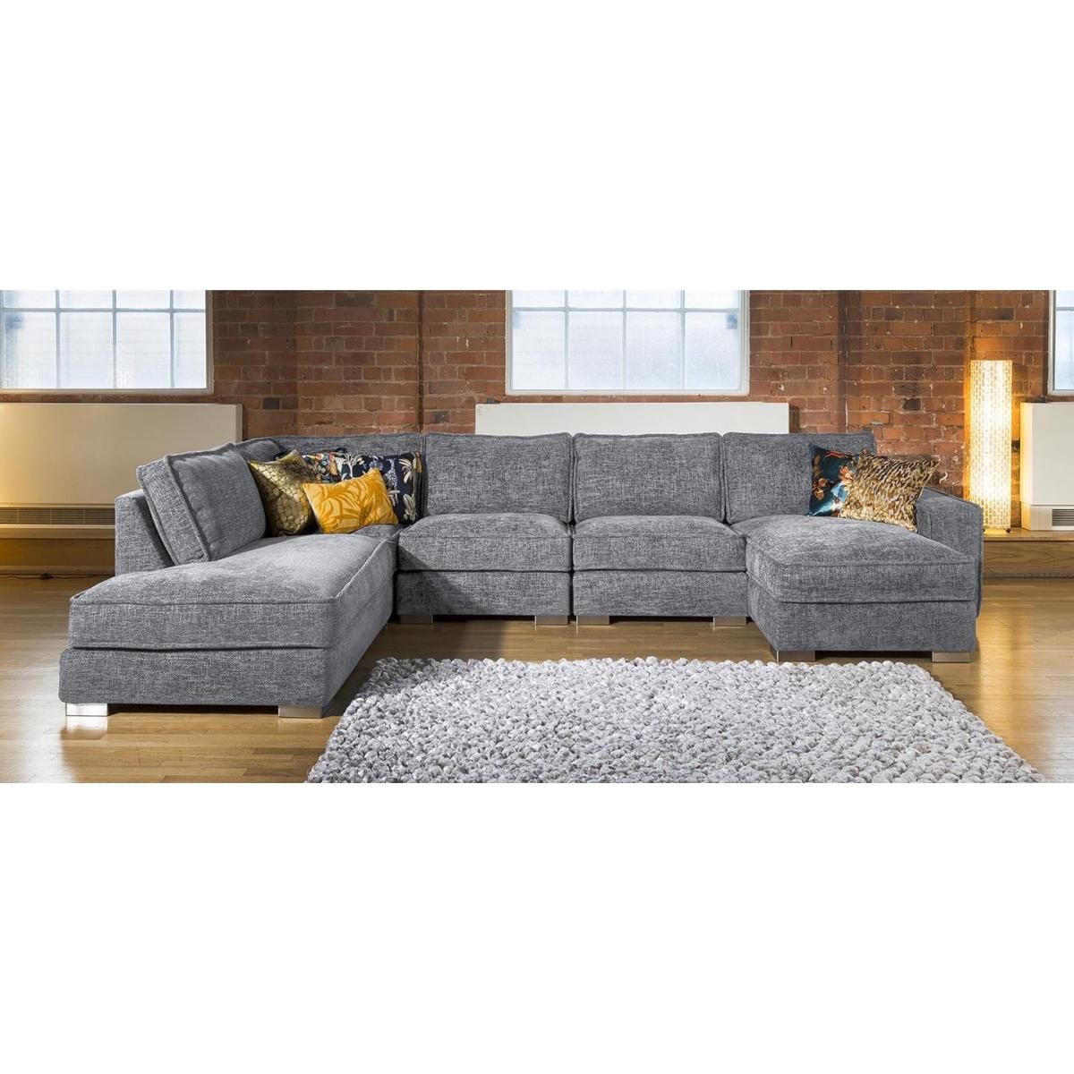 The luxury Lexci 5 seater settee is unique to Quatropi. The Modern sofa can comfortably seat 5 people and would look perfect in any living room or cinema room. The Lexci 15. L sofa is a great addition to the Lexci range and would be complemented by one of the matching Lexci armchairs. This couch is fully customisable with a full range of fabrics & colours to choose from. Beautiful design with soft padded arms, massive corner and U shaped sofa options and two different sizes of footstools. The Lexci range includes large back pillow cushions that doesn't only provide a stunning look, they also give versatility to ensure your comfort whatever your size or seating position. All pieces are superb quality with exceptional attention to detail especially the French stitched seams. Some of the great features of the Lexci range include oversize sections including corners, middle sections, footstools and Chaise ends, striking brushed stainless feet, thick French seams and soft back cushions give a completely unique contemporary look. Built with pillow soft hollow-fibre and high density foam cushion fillings, plump the back cushions occasionally to keep them looking fabulous. The Lexci range is completely modular so you can add and take away pieces as you need. Let our experts help you find the exact size and shape to fit your space perfectly. W365cm D220cm H83cm Soft Sit Cushions All dimensions are approximate due to fabric differences. Please allow tolerance of +/- 5cm to any direction