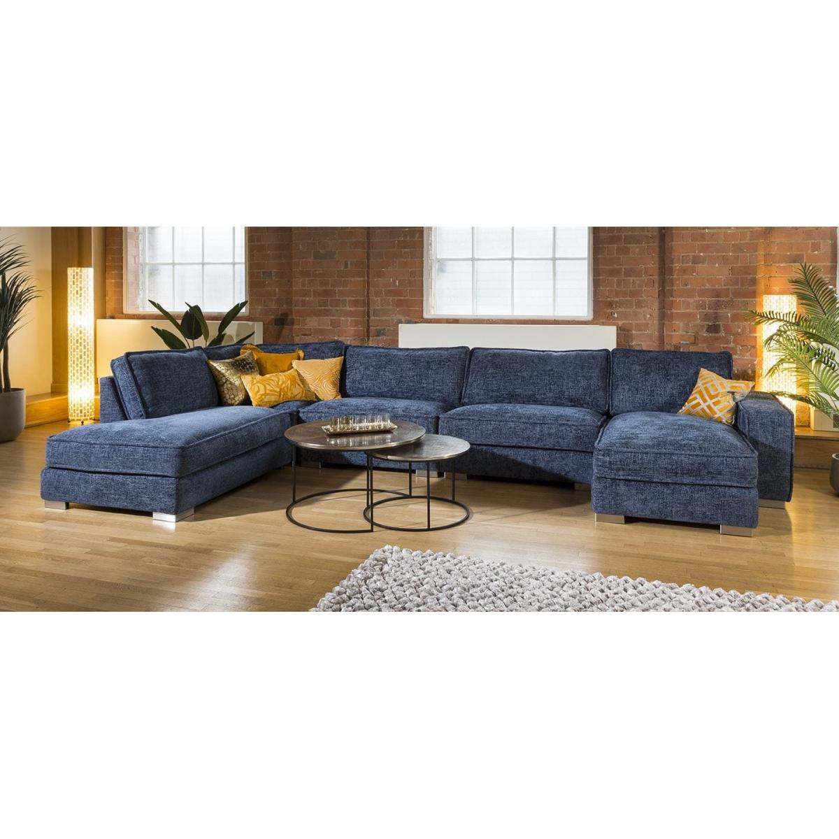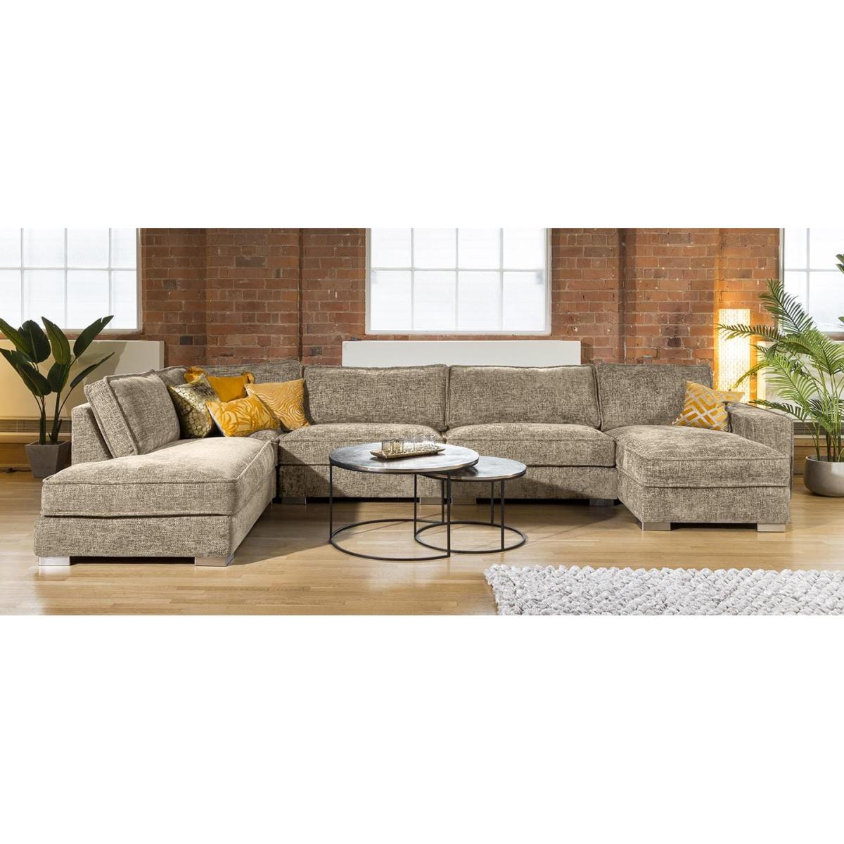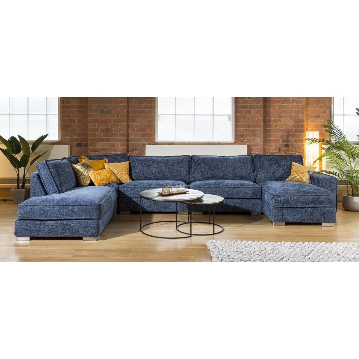 The luxury Lexci 5 seater settee is unique to Quatropi. The Modern sofa can comfortably seat 5 people and would look perfect in any living room or cinema room. The Lexci 15. L sofa is a great addition to the Lexci range and would be complemented by one of the matching Lexci armchairs. This couch is fully customisable with a full range of fabrics & colours to choose from. Beautiful design with soft padded arms, massive corner and U shaped sofa options and two different sizes of footstools. The Lexci range includes large back pillow cushions that doesn't only provide a stunning look, they also give versatility to ensure your comfort whatever your size or seating position. All pieces are superb quality with exceptional attention to detail especially the French stitched seams. Some of the great features of the Lexci range include oversize sections including corners, middle sections, footstools and Chaise ends, striking brushed stainless feet, thick French seams and soft back cushions give a completely unique contemporary look. Built with pillow soft hollow-fibre and high density foam cushion fillings, plump the back cushions occasionally to keep them looking fabulous. The Lexci range is completely modular so you can add and take away pieces as you need. Let our experts help you find the exact size and shape to fit your space perfectly. W415cm D220cm H83cm Soft Sit Cushions All dimensions are approximate due to fabric differences. Please allow tolerance of +/- 5cm to any direction