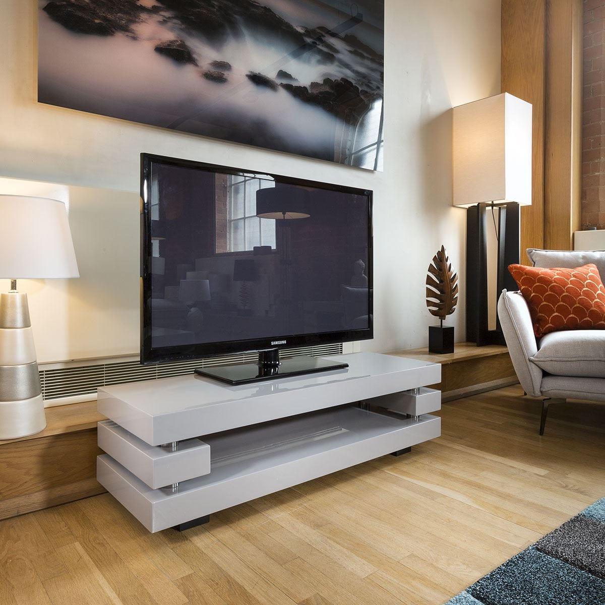 Quatropi Modern Designer TV Cabinet Unit Stand Grey Gloss Stunning 97F