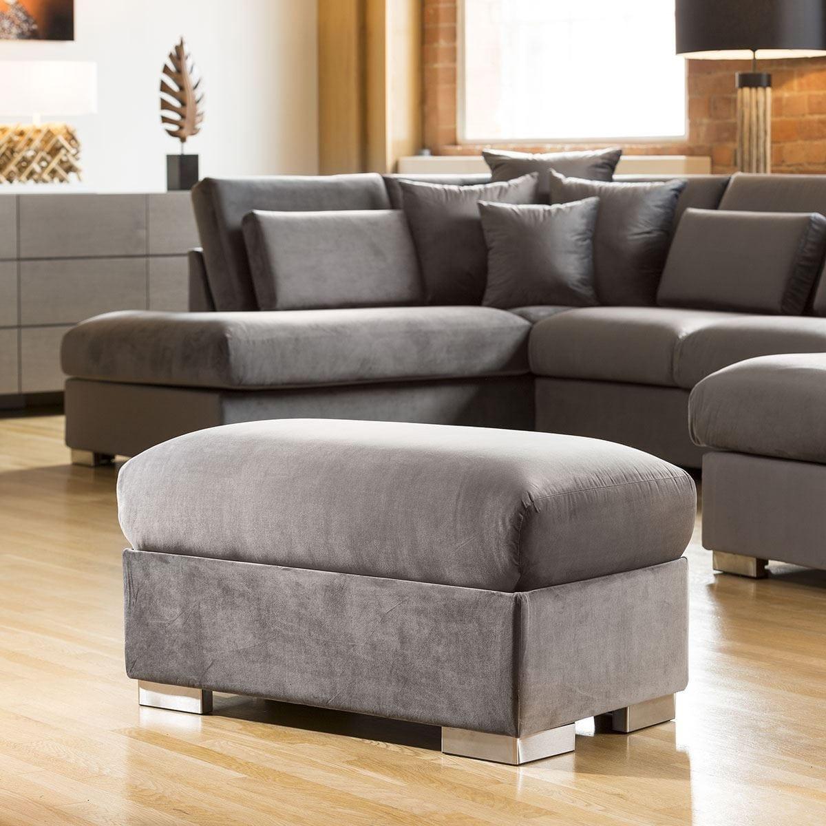 This foot stool is part of the large Ohio range of quality straight, corner and U shaped sofas and armchairs, choose your fabric, choose your shape. Available with coordinating or contrasting headrests, footstools, pillow and scatter cushions. The first thing that you will notice is flat sleek lines of the seat and back cushions giving a super neat and contemporary look. All this is built on a strong solid wood frame and will be delivered in a few sections that easily bolt together. Over 200 fabric options and unlimited designs as you can add extra sections to any of this range. Other features include; Super comfy double back cushions, 4 layers of springs, Foam and wadding base cushions, Beautiful large curved arms, Minimal stitching and high end modern but subtle steel feet. W54cm D90cm H45cm Choose from over 100 fabrics All dimensions are approximate due to fabric differences. Please allow tolerance of +/- 5cm to any direction