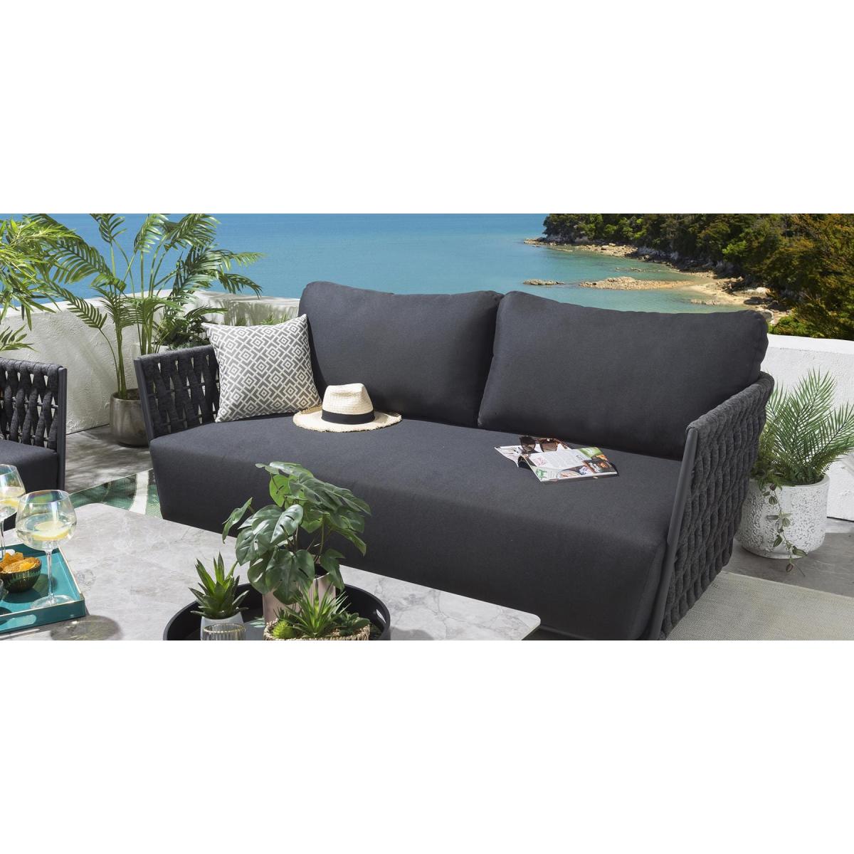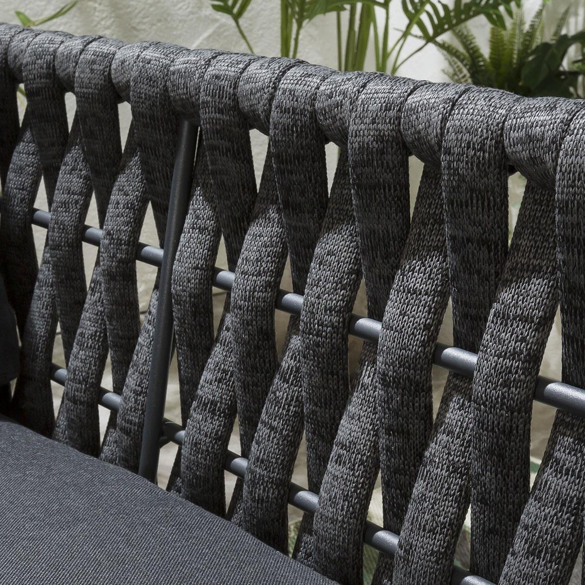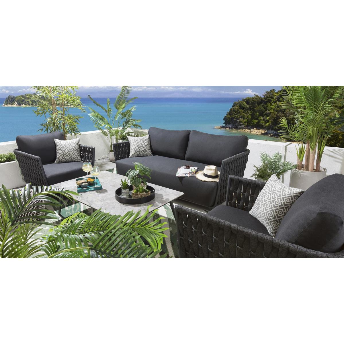 Introducing the Quatropi Moon range outdoor sofa range - the ultimate in luxurious outdoor living. Perfect for any outdoor space, this range boasts a bold yet contemporary design that is sure to make a statement. Crafted from high-quality materials for ultimate durability and comfort, the Quatropi Moon range features luxurious deep cushions, thick rope design and an aluminum frame that is strong yet lightweight. The charcoal color of the frame adds a modern, chic appeal to your outdoor area. The cushions of the Quatropi Moon range are designed with luxurious deep comfort in mind. With thick foam padding, these cushions offer supreme comfort and a level of relaxation that is unparalleled. The thick rope design gives the sofa range a unique touch, while the aluminum frame ensures lasting durability. The overall design of the Quatropi Moon range is sleek and modern, making it a perfect addition to any outdoor area. The Quatropi Moon range also comes with free covers to help protect your investment. These covers are water-resistant and are designed to keep your furniture looking like new. As an added bonus, the Quatropi Moon range also comes with a 5 year warranty for added peace of mind. W189cm D93cm H66cm 5 Year Warranty Exclusive Quatropi design