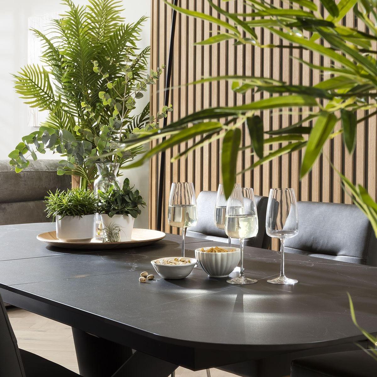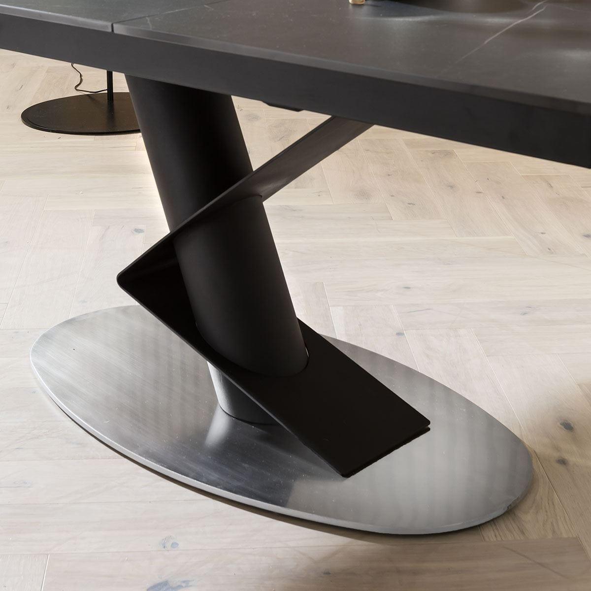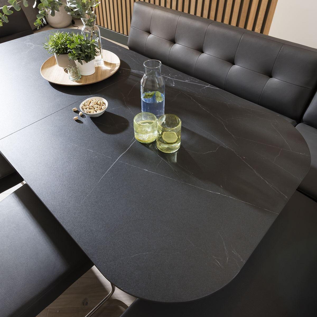 Large modern dining tables where the whole family can come together is what we specialise in. This extendable ceramic dining table pulls inspiration from modern designer-chic that is sleek and sophisticated, with a truly modern design featuring soft, rounded edges and a bold pedestal with a geometric feature. The black powder coated pedestal and brushed stainless steel base provide a sturdy, balanced base for tables and desks of various sizes. The elegant 6 - 8 seater table easily extends from 180cm to a generous 220cm and features tempered glass with a textured 3mm Black ceramic finish. Our premium extendable dining tables come into their own at family gatherings and larger dinner parties. Available in a wide choice of materials, from chic glass to classic wood, our extendable tables are perfect for those intimate dinners and accommodating extra guests in style. Browse through our stunning range of designer extending dining tables now and find the perfect one for your space. W180-220cm D90cm H76cm Extends from 180cm to 220cm Black Marble Effect Ceramic Tabletop