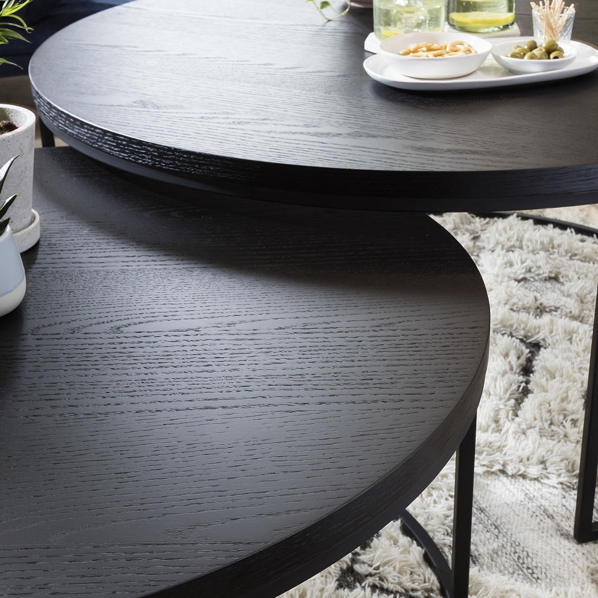 Quatropi Round Nesting Coffee Table 2-Piece Black Oak - Black Metal Base
