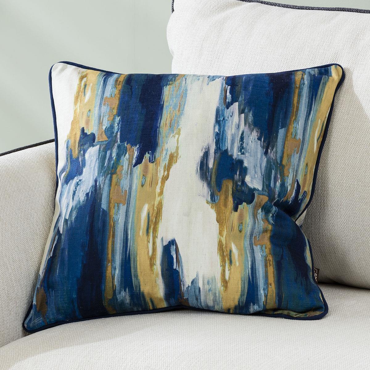 I love this cushion for its versatile pattern and colour palette, making it a great addition to both modern and eclectic interiors. The mix of brindle tones with hints of blue ochre adds warmth and depth, perfect for injecting subtle colour without overpowering the space. It works well on neutral sofas or armchairs, providing a pop of interest and texture. For styling tips, pair it with other cushions in complementary shades or different textures to create a layered, inviting look. Its size makes it functional for both decorative purposes and comfortable support, making it a practical choice for living rooms or bedrooms.