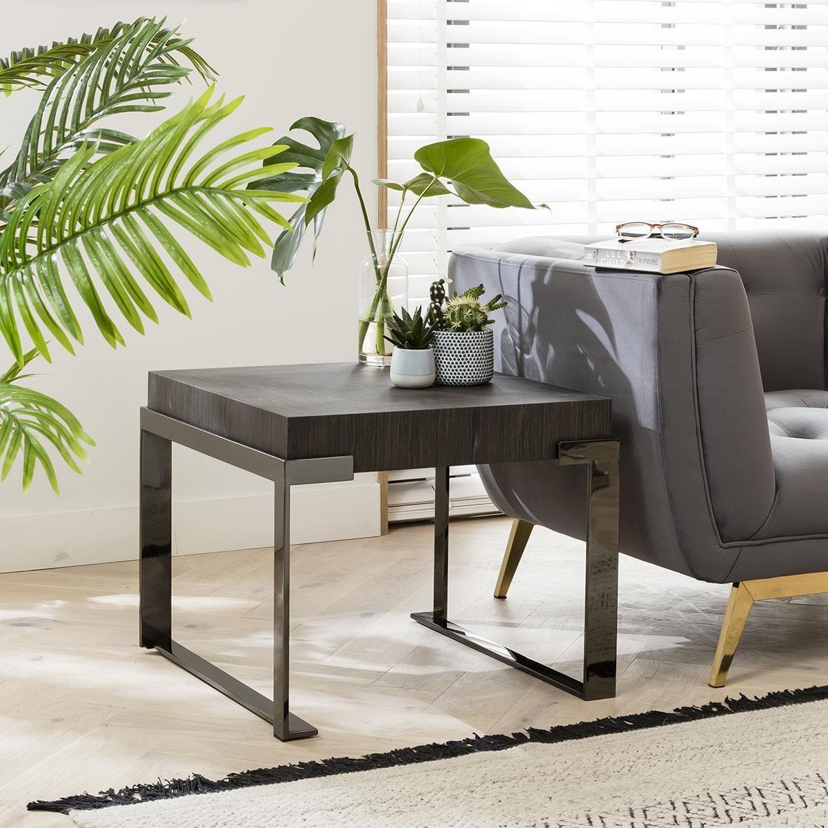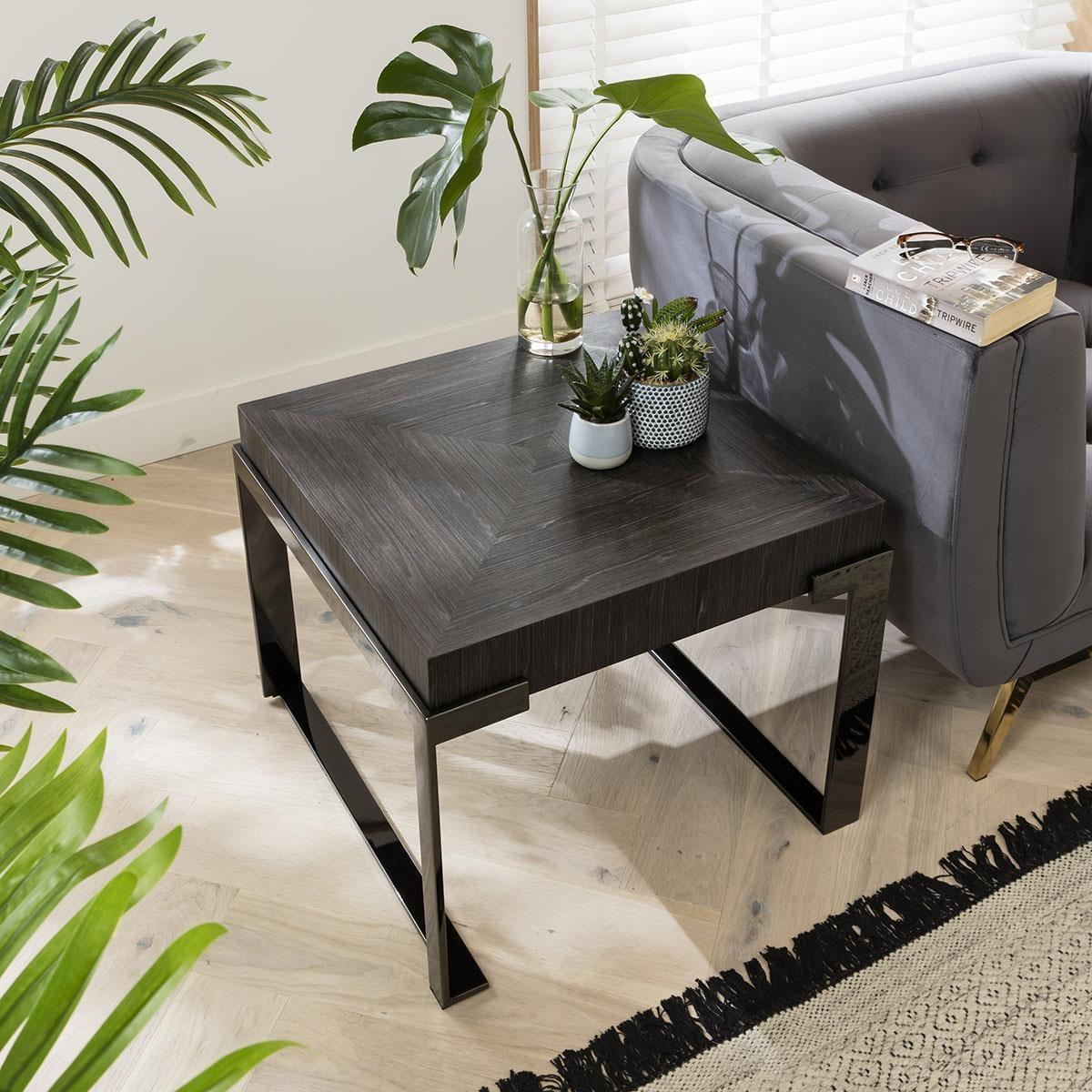 The Carbonado Side Table spells a contemporary charm and a quintessential touch, while providing welcome surface space. This piece is visually pleasing in its modern design, and is crafted with a diamond pattern smoked oak top encased by the sleek lines of the black rifle stainless steel shaped into handsome legs. The end table creates a visually appealing contrast, lending to the masculine elegance of this addition to your living room with a stainless steel base and premium veneer top, it's a perfect focal point of your living area or lobby. Attractive and functional, the Carbonado end table is exactly what you need to complete your room. Pair it up to frame your sofa set or bed for a glam finish. Quatropi have a wide range of side tables to suit any taste, from robust, industrial-esque collections to shiny, elegant glass side tables. The end table creates a visually appealing contrast, lending to the masculine elegance of this addition to your living room with a stainless steel base and premium veneer top, it's a perfect focal point of your living area or lobby. Attractive and functional, the Carbonado end table is exactly what you need to complete your room. Pair it up to frame your sofa set or bed for a glam finish. Quatropi have a wide range of side tables to suit any taste, from robust, industrial-esque collections to shiny, elegant glass side tables. W62cm D62cm H50cm Complete the look with the Carbonado TV stand, sideboard & coffee table Gun Metal Grey Chrome Finish