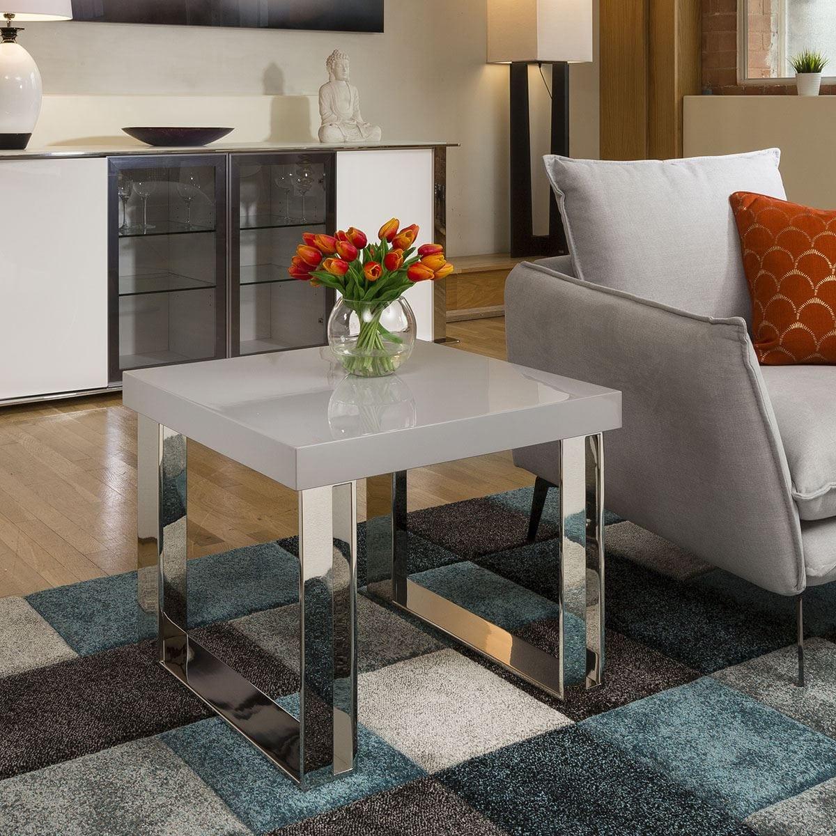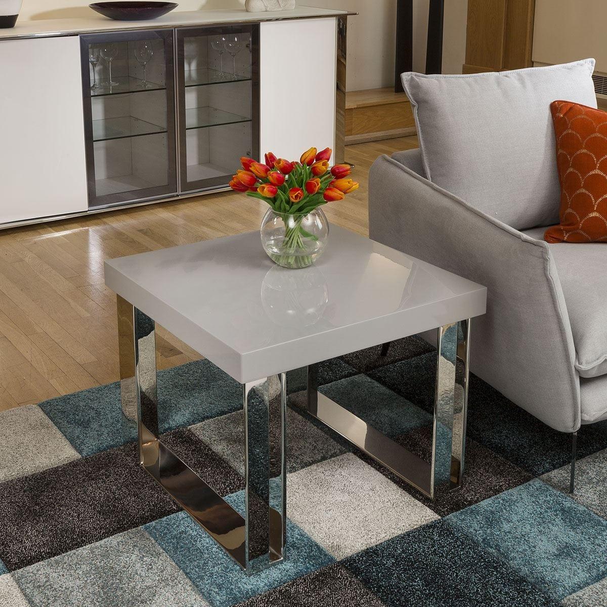 Quatropi Sophie Designer Modern Side End Lamp Table Grey Gloss Square