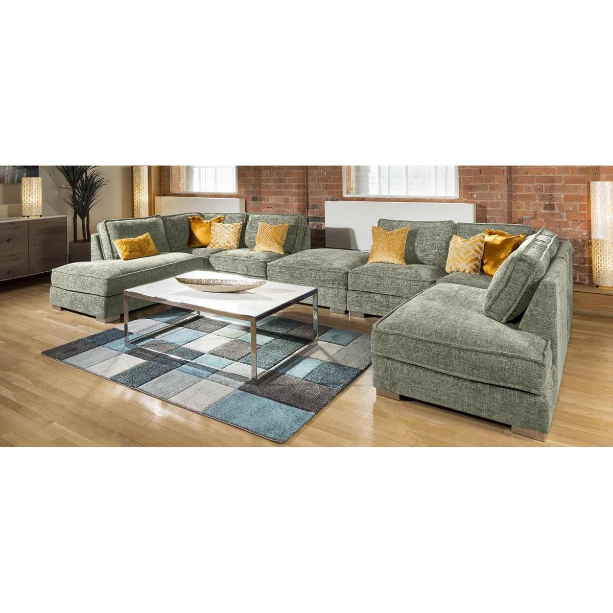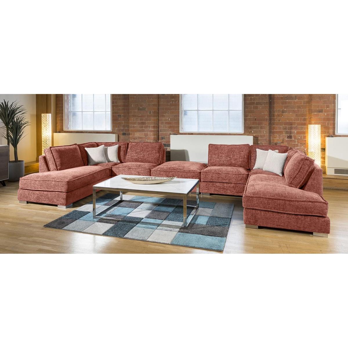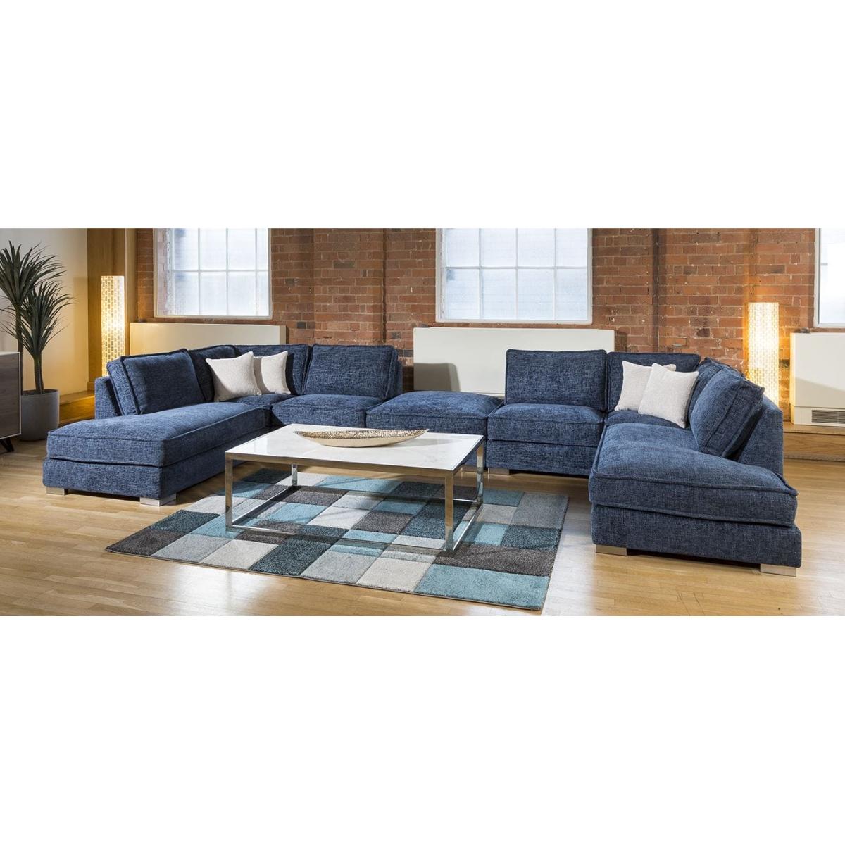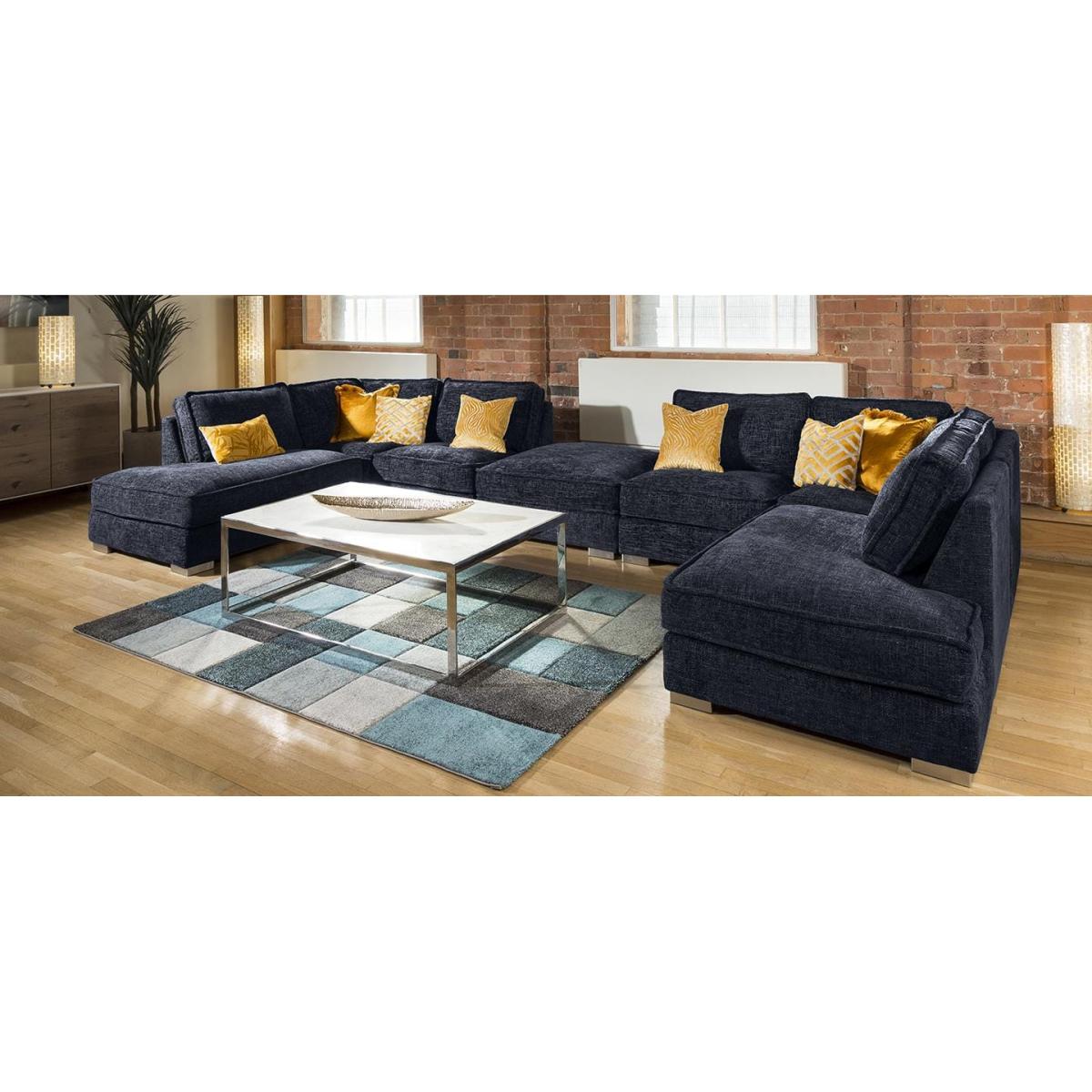 The designer Lexci 7 seater U shaped sofa is exclusive to Quatropi. The modern settee can comfortably seat 7 people and would look perfect in any living room or cinema room. The Lexci 10 sofa is a great addition to the Lexci range and would be complemented by one of the matching Lexci armchairs. This Couch is fully Modular with a full range of fabrics & colours to choose from. Beautiful design with soft padded arms, massive corner and U shaped sofa options and two different sizes of footstools. The Lexci range includes large back pillow cushions that doesn't only provide a stunning look, they also give versatility to ensure your comfort whatever your size or seating position. All pieces are superb quality with exceptional attention to detail especially the French stitched seams. Some of the great features of the Lexci range include oversize sections including corners, middle sections, footstools and Chaise ends, striking brushed stainless feet, thick French seams and soft back cushions give a completely unique contemporary look. Built with pillow soft hollow-fibre and high density foam cushion fillings, plump the back cushions occasionally to keep them looking fabulous. The Lexci range is completely modular so you can add and take away pieces as you need. Let our experts help you find the exact size and shape to fit your space perfectly. W448cm D220cm H83cm Soft Sit Cushions All dimensions are approximate due to fabric differences. Please allow tolerance of +/- 5cm to any direction