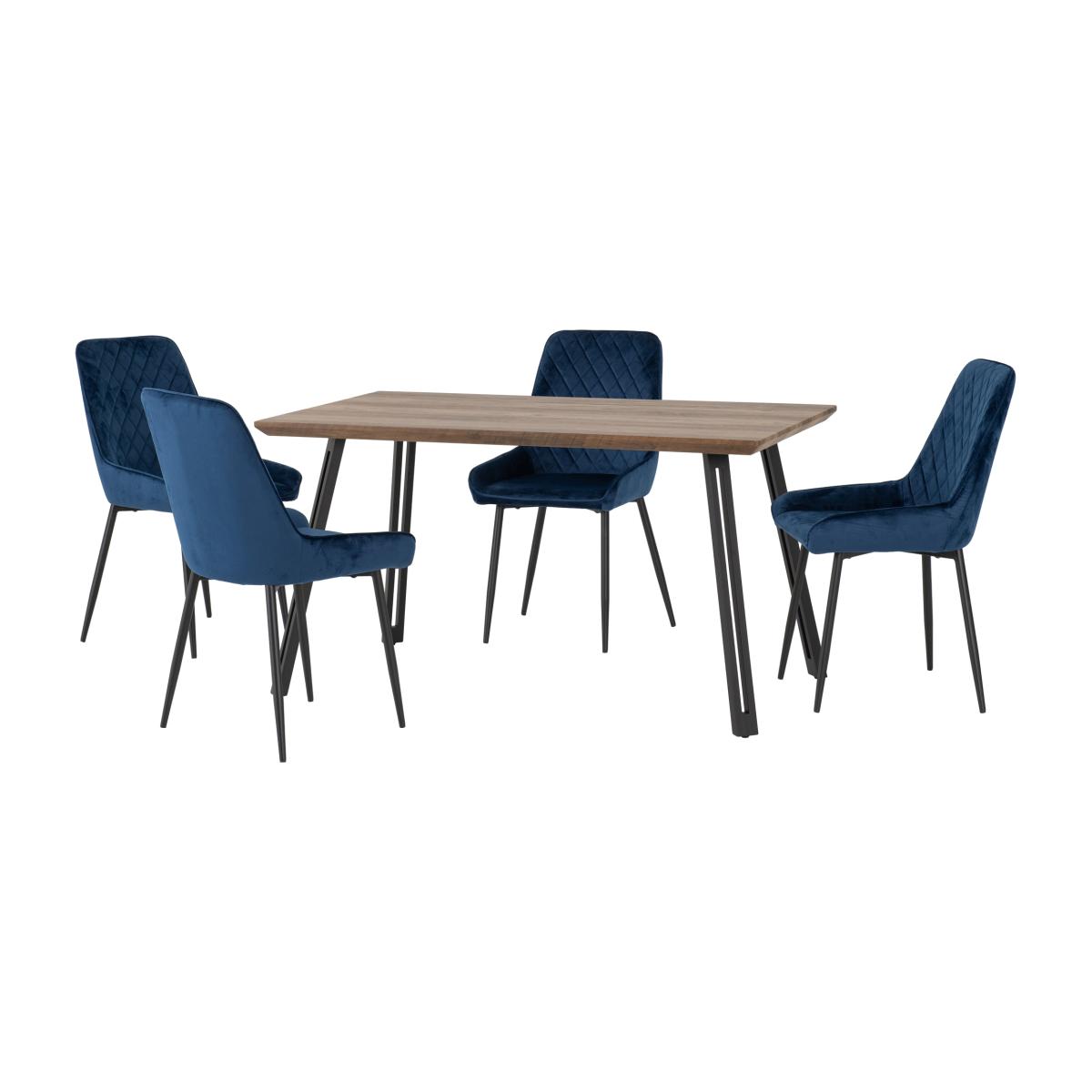 Quebec Rectangular Oak Effect Dining Table with 4 Avery Blue Dining Chairs Navy Blue