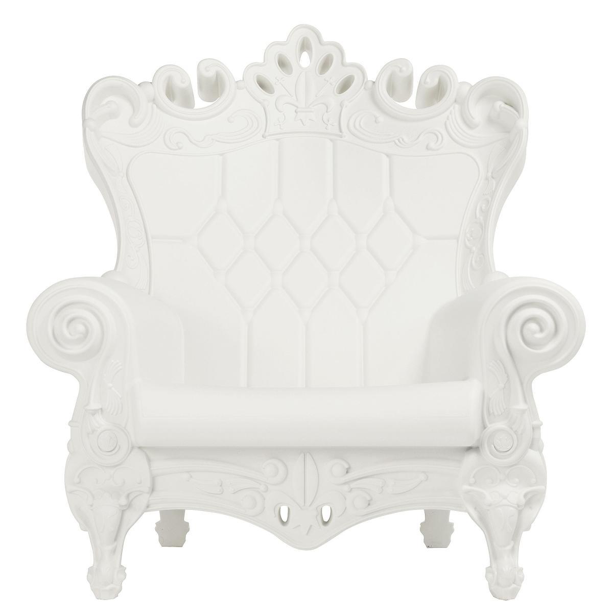The Queen of Love is part of the the original range of the Design of Love Collection recently presentedby SLIDE and characterised with details and finishings that are rococò style. Elegant and refined, ironic and contemptuous but most importantly unique and particular, the Queen of Love is not onlya luxurious seat but also an irrisistable design furniture. The seat adapts to any type of space, indoor and outdoor,such as living rooms, shops and restaurants as well as for contract. Like all the SLIDE collection, the Queen of Love is realised in recyclable polyethylene, UV stabilised with rotational moulding technology. Weather resistant and easy to clean.