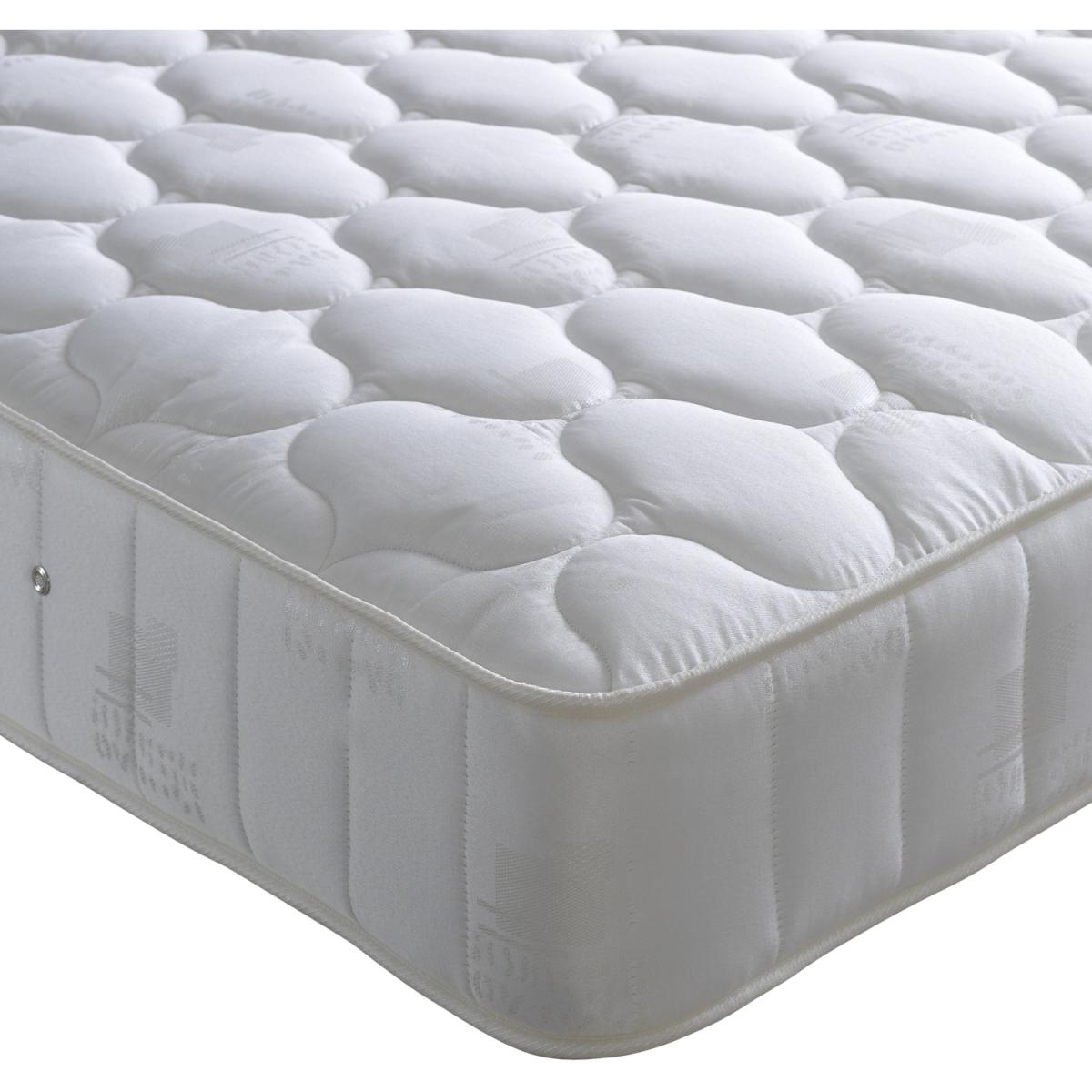 A deep coil sprung semi-orthopaedic mattress. Micro quilted panels, a vertical border and finished with a luxury damask fabric. Exceptional support to your spine and features a bonnell spring unit with an open coil construction for additional comfort and also benefits from traditional layers of fillings. Combination of style and comfort, this exclusively designed mattress offers separate springs, which are arranged in lines, interlinked with helical wire as well as a rod supporting the edge of the mattress. It includes handles to turn and rotate it and air vents to keep you fresh while asleep. A classic mattress at a very reasonable price.