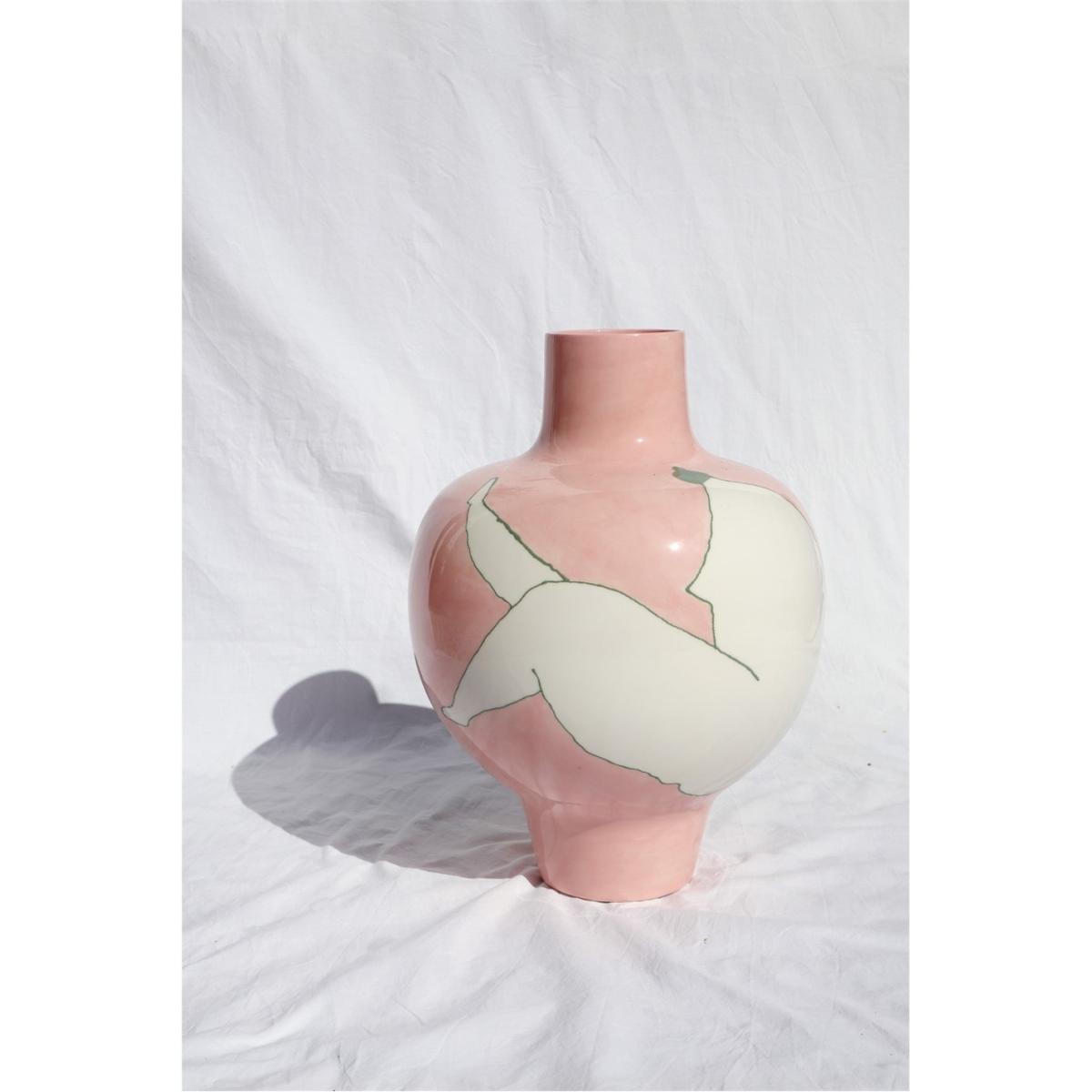 I adore this pink vase for its sculptural shape and gentle colour, making it a versatile piece in both modern and eclectic interiors. It works particularly well in minimalist schemes where it can serve as a subtle focal point, or in more playful décor with colourful accents. Practical styling tips include pairing it with long-stemmed flowers or greenery to highlight its elegant form, or leaving it empty for a striking decorative statement. Its size and shape also make it great on sideboards or console tables, adding a touch of contemporary charm without overwhelming the space.