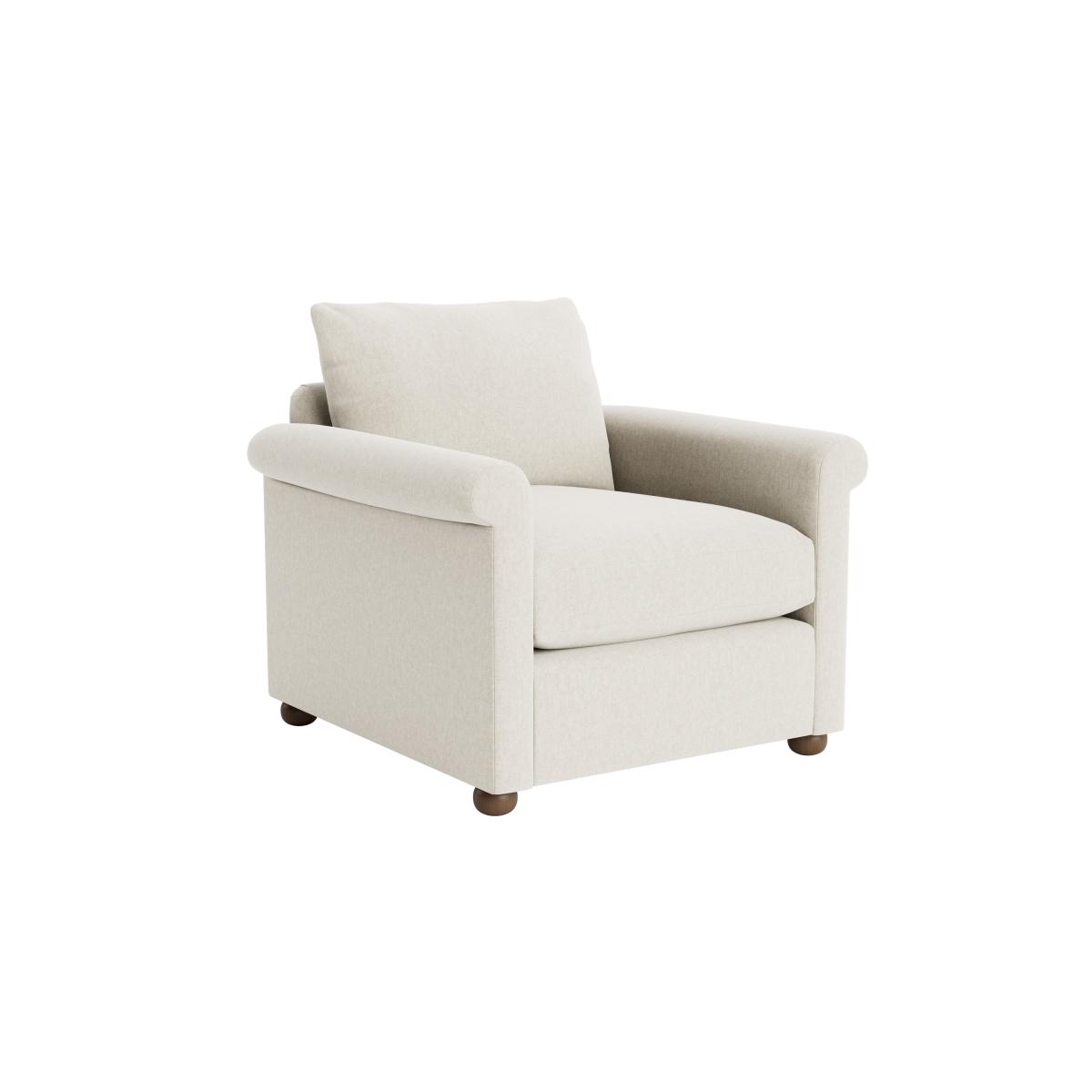 With plush cushions, a deep seat and Georgian-inspired bun feet, this perfectly portioned armchair offers offers comfort fit for royalty. Subtle scroll arms, and a stately sit-up silhouette, keeps things relaxed but...