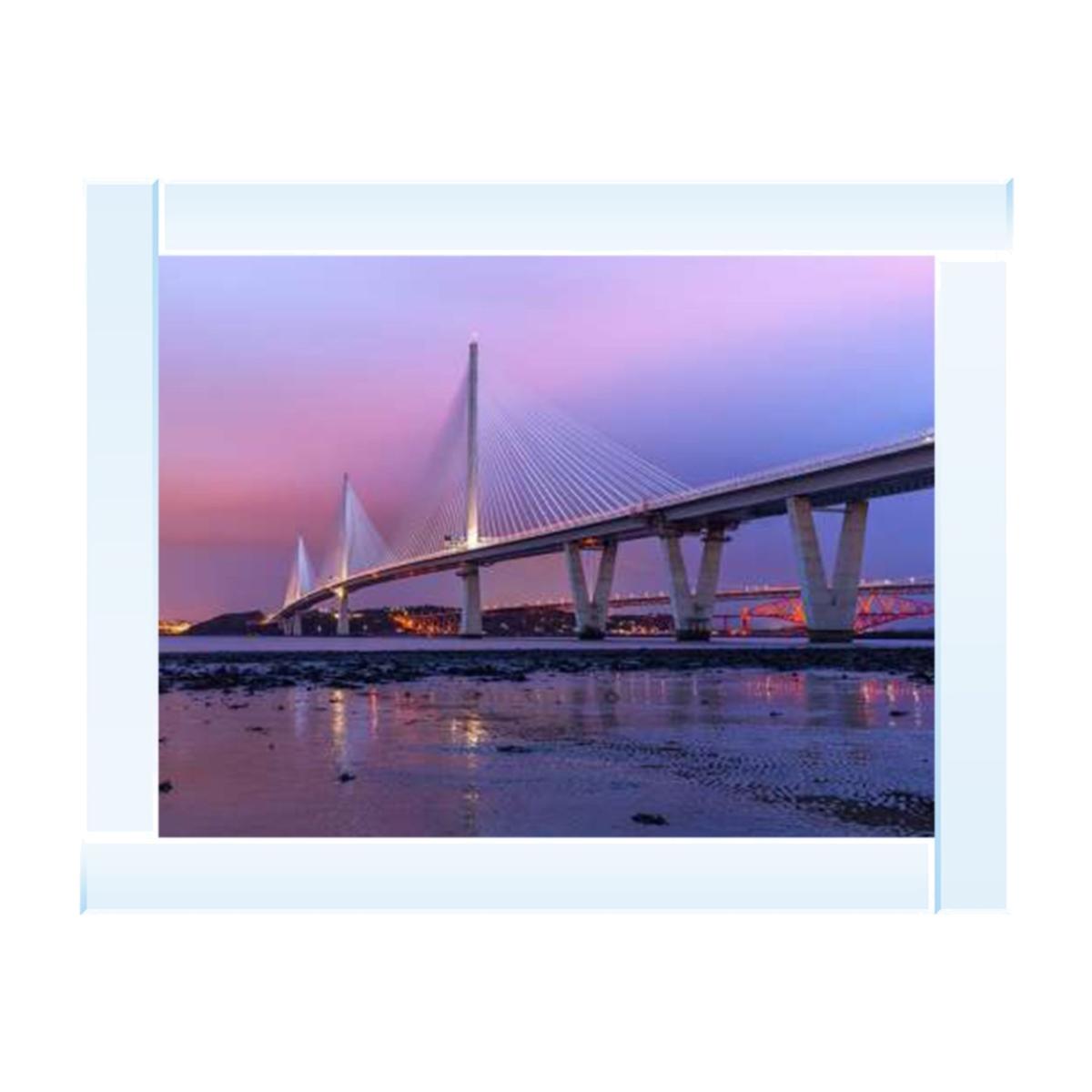 Beautiful wall art boasting a dramatic Queensferry Crossing skyscape with mirrored frame. Update your interiors with an iconic print of Edinburgh Queensferry Crossing under a beautiful purple hazed sky. Framed in a fantastic mirrored frame, this print will bring Scottish charm into your home, perfect for living rooms as and dining areas.