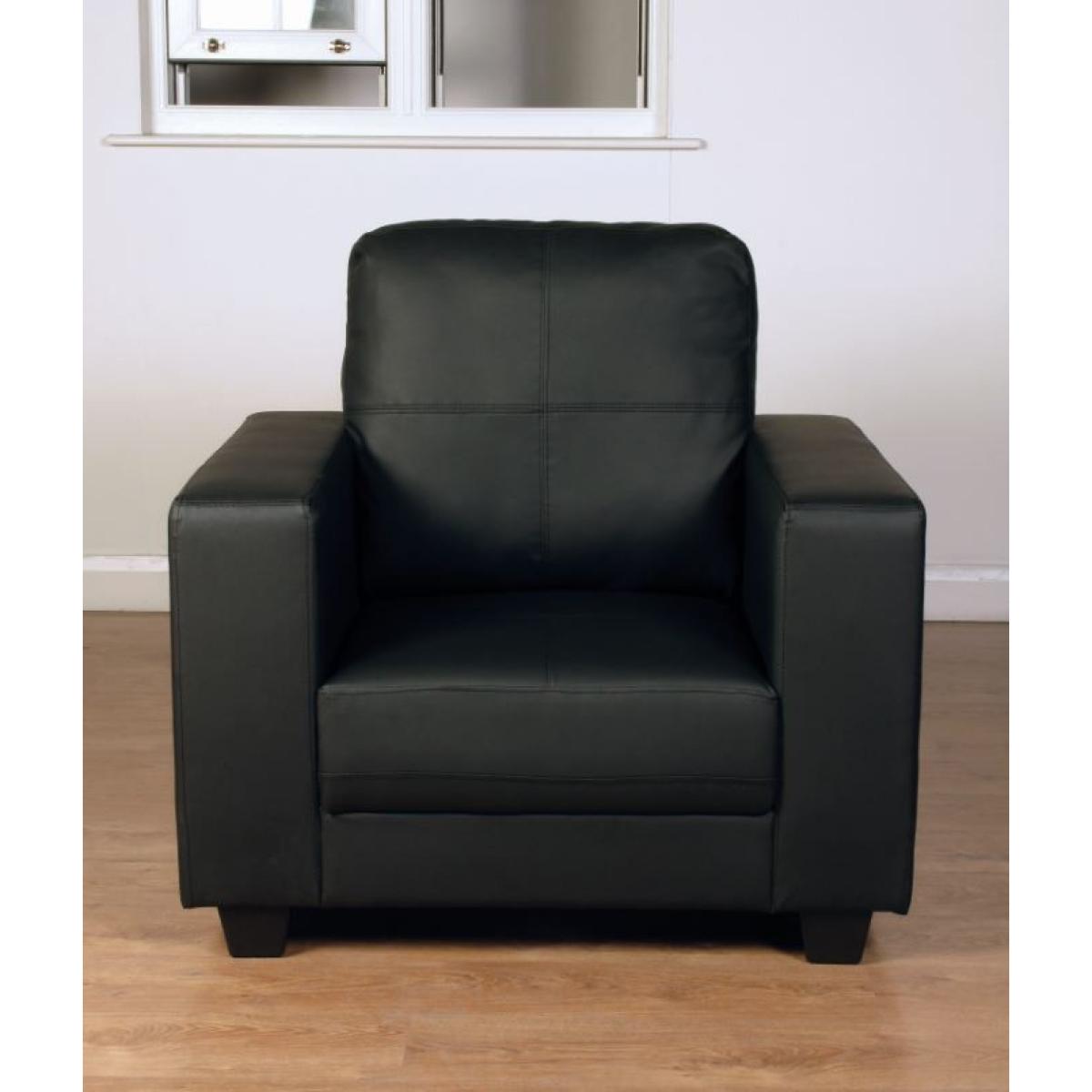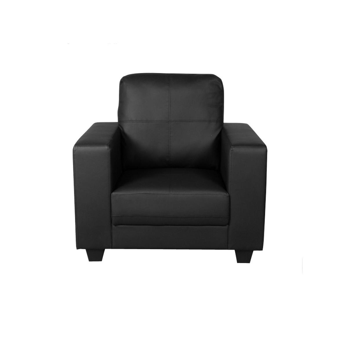 The Queensway black armchair was designed with comfort, quality, style, and durability in mind. The armchair has sleek faux leather upholstery and a traditional square frame. This armchair is an elegant and comfortable addition to your living room or study. Comfortable and stylish armchair for the living room or study. A compact frame that ensures the chair doesn’t take up too much floor space, making it perfect for homes with small living rooms. Beautiful faux leather upholstery that gives the chair a sleek and sophisticated look. Short, strong tapered legs provide maximum stability and support. Traditional square arms. Densely padded cushions for a comfortable sit. Ultra-comfortable cushioned backrest that provides both comfort and neck and back support. Matching faux leather 2 seater and 3 seater sofas available. Also available in brown faux leather upholstery.