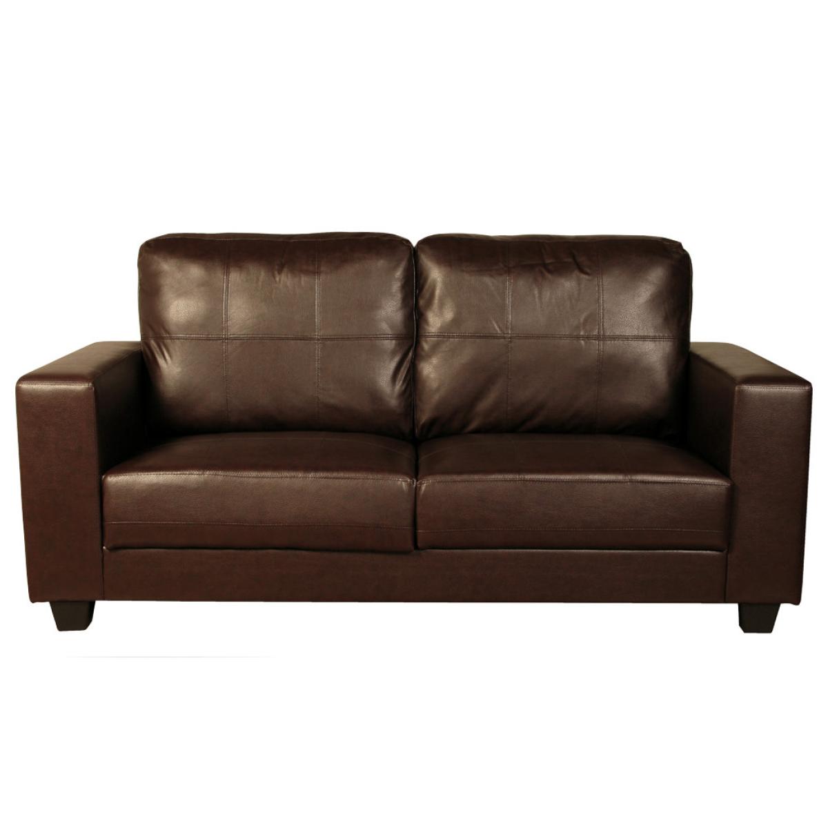 The Queensway brown 3 seater was designed to satisfy your need for high quality and affordable luxury furniture. This sofa has a tasteful design with classic squared armrests and a sleek brown faux leather finish. A cosy and elegant sofa for three, perfect for your living room. Stunning rich brown faux leather upholstery for a sophisticated and luxurious feel. Classic square arm design Short, strong legs that taper downwards, which provide plenty of stability and support Generously padded cushions for a comfortable sit. Supportive backrest with a dense cushion, offering ultimate comfort and back and neck support. Matching armchair and 2 seater sofa available Also available with black faux leather