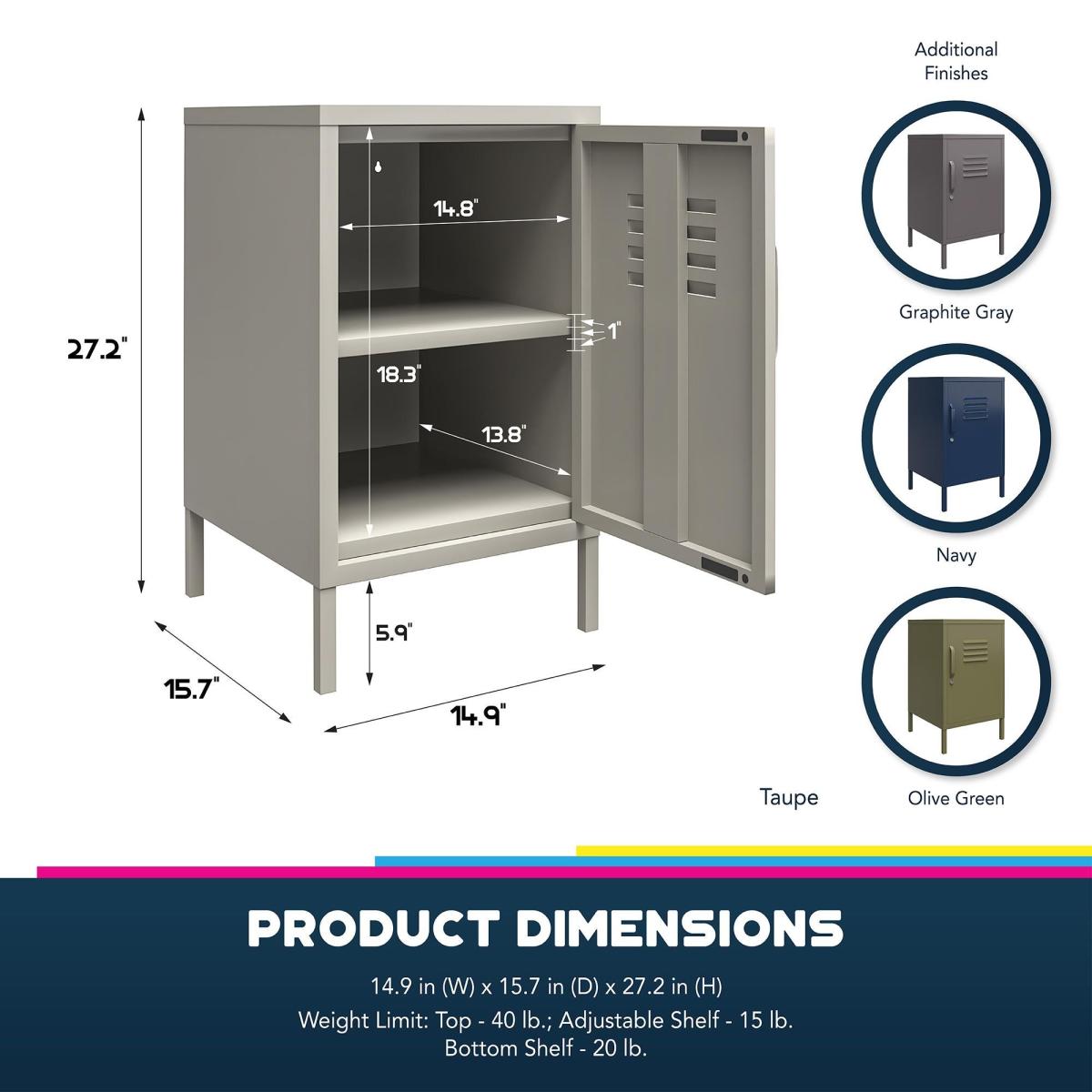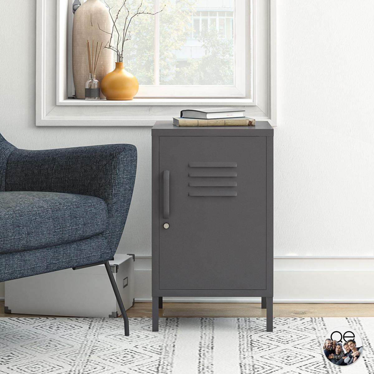 * Powder coated finish in a choice of colours* Self assembly required* Single cupboard with two internal shelves* Perfect for adding a pop of colour to your space* Matching furniture items also available Let's take your living room from basic to fabulous with the high-end Bradford Metal Locker End Table. Your living space is an expression of who you are, and this end table perfectly showcases your unique flair. With its fun and funky locker-style design, it's sure to be a hit and adds that extra touch of personality that you deserve.