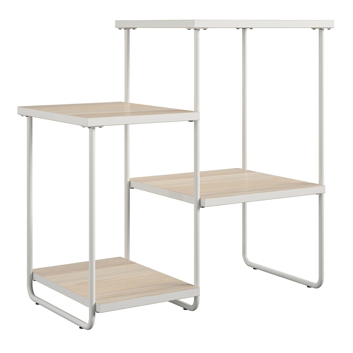 Let the Dante Plant Stand by Queer Eye bring the beauty and health benefits of greenery indoors! With its elegant restrained silhouettes of matte white on a natural woodgrain finish, this plant stand adds a touch of sophistication to any space. Unleash your inner design diva by creating a unique configuration of art pieces and flora on the four open shelves.