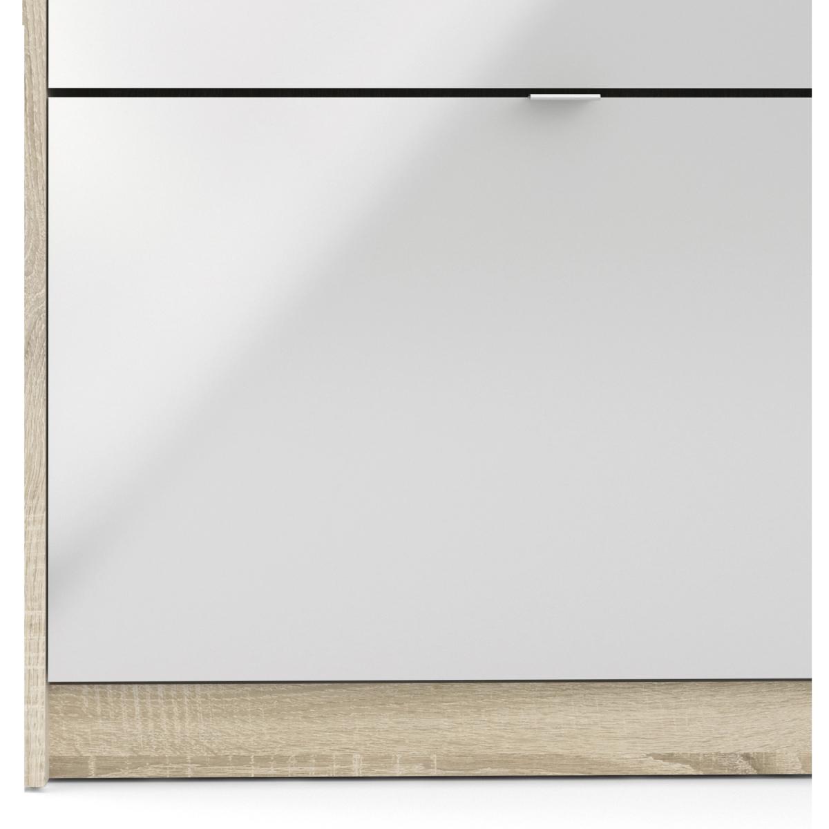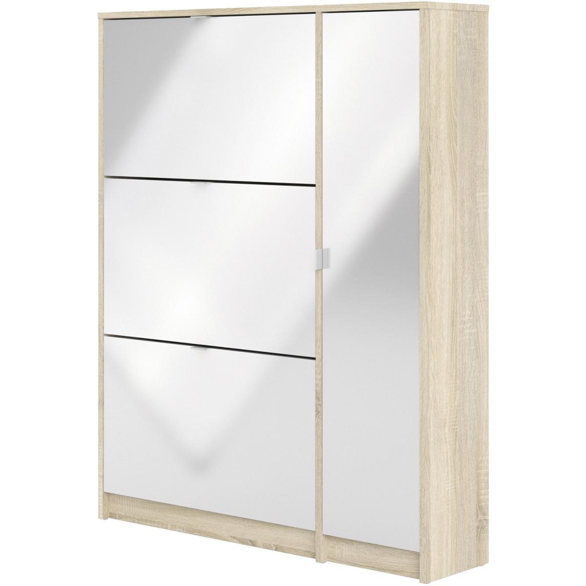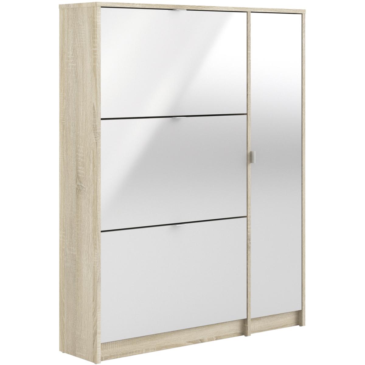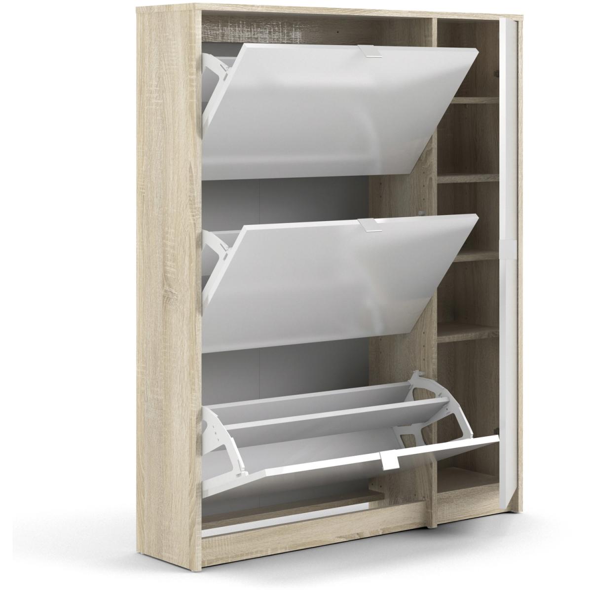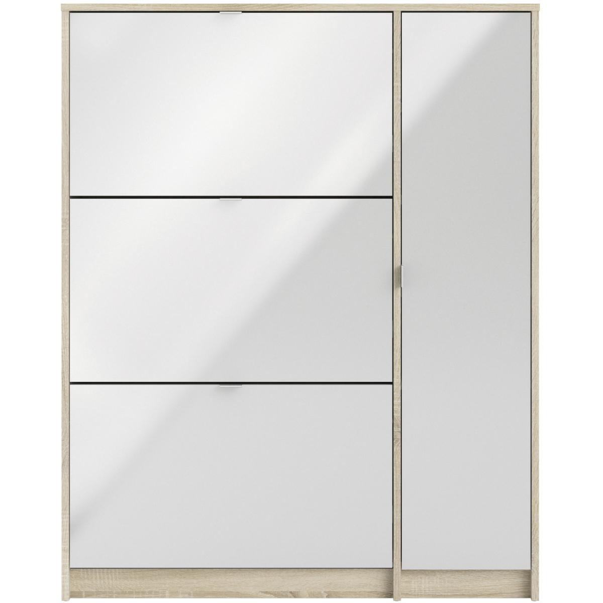 Quendale Shoe Cabinet With Three Tilting Doors And Two Layers + One Door - Oak with White gloss