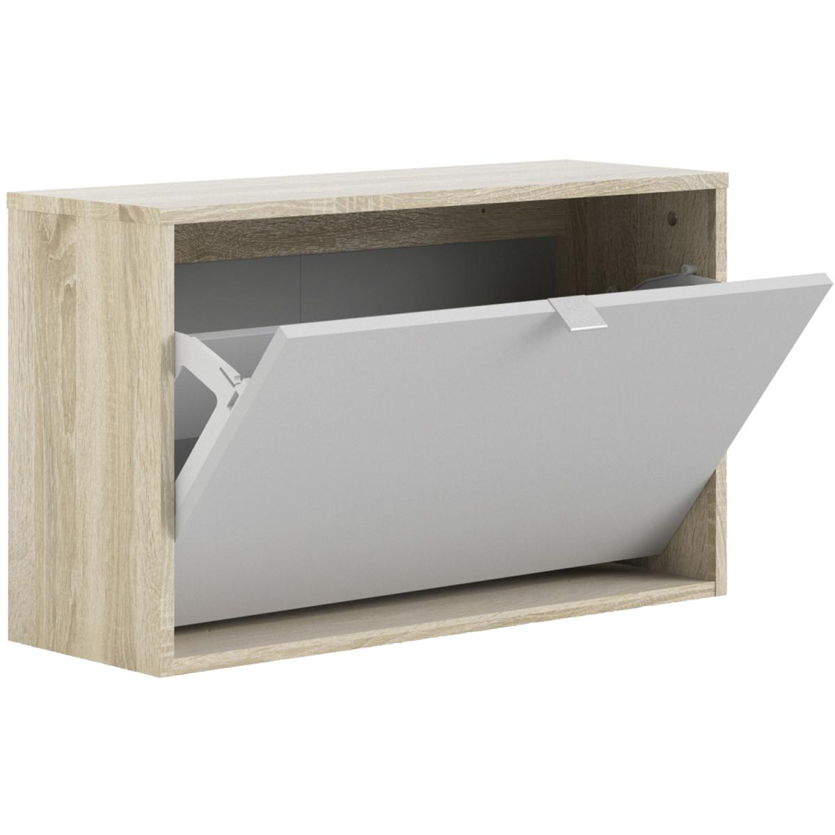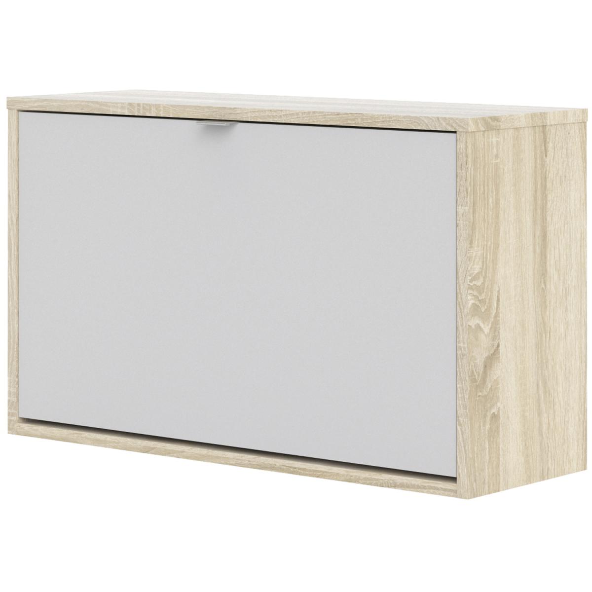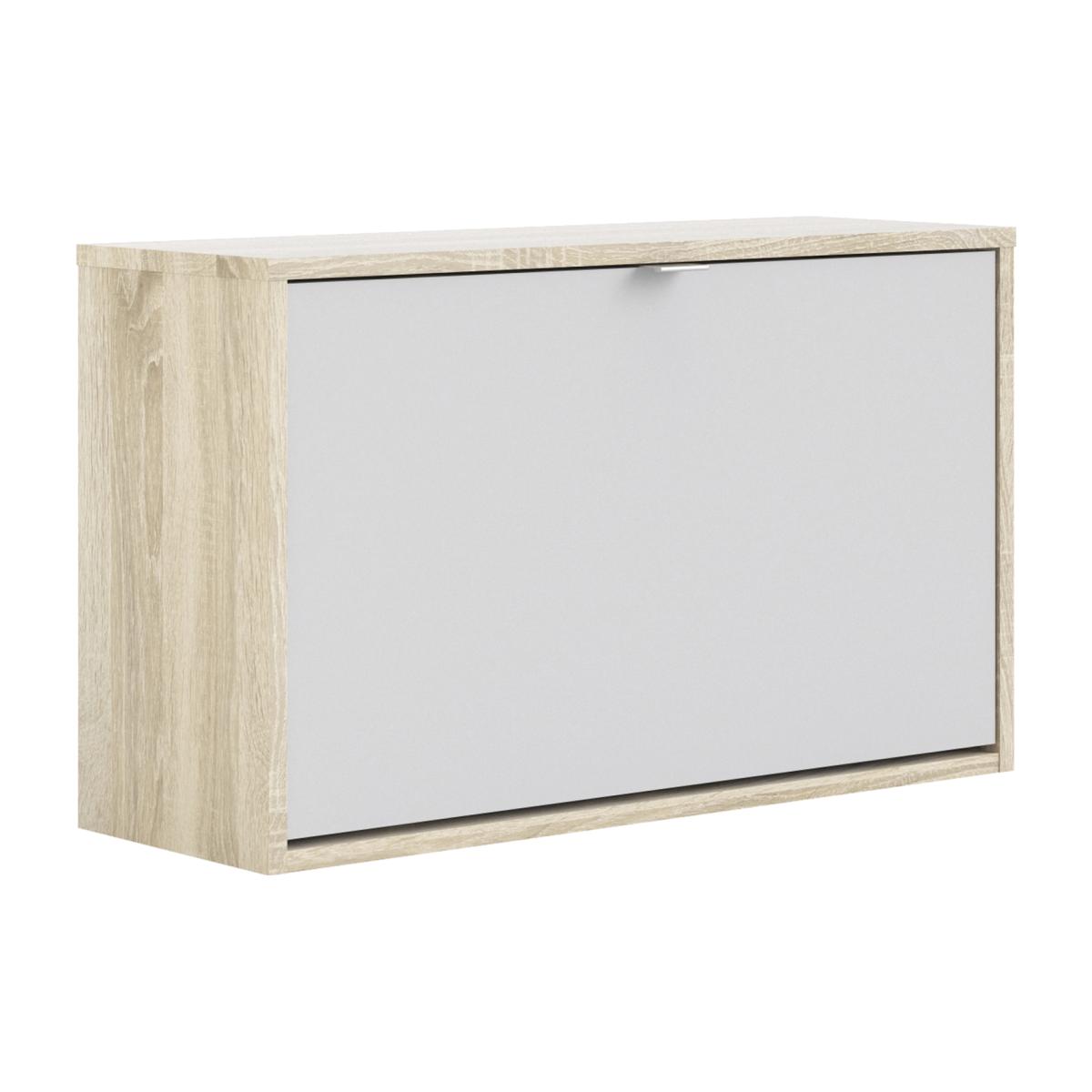 Quendlae Shoe Cabinet With One Tilting Door And Two Layers - Oak & White