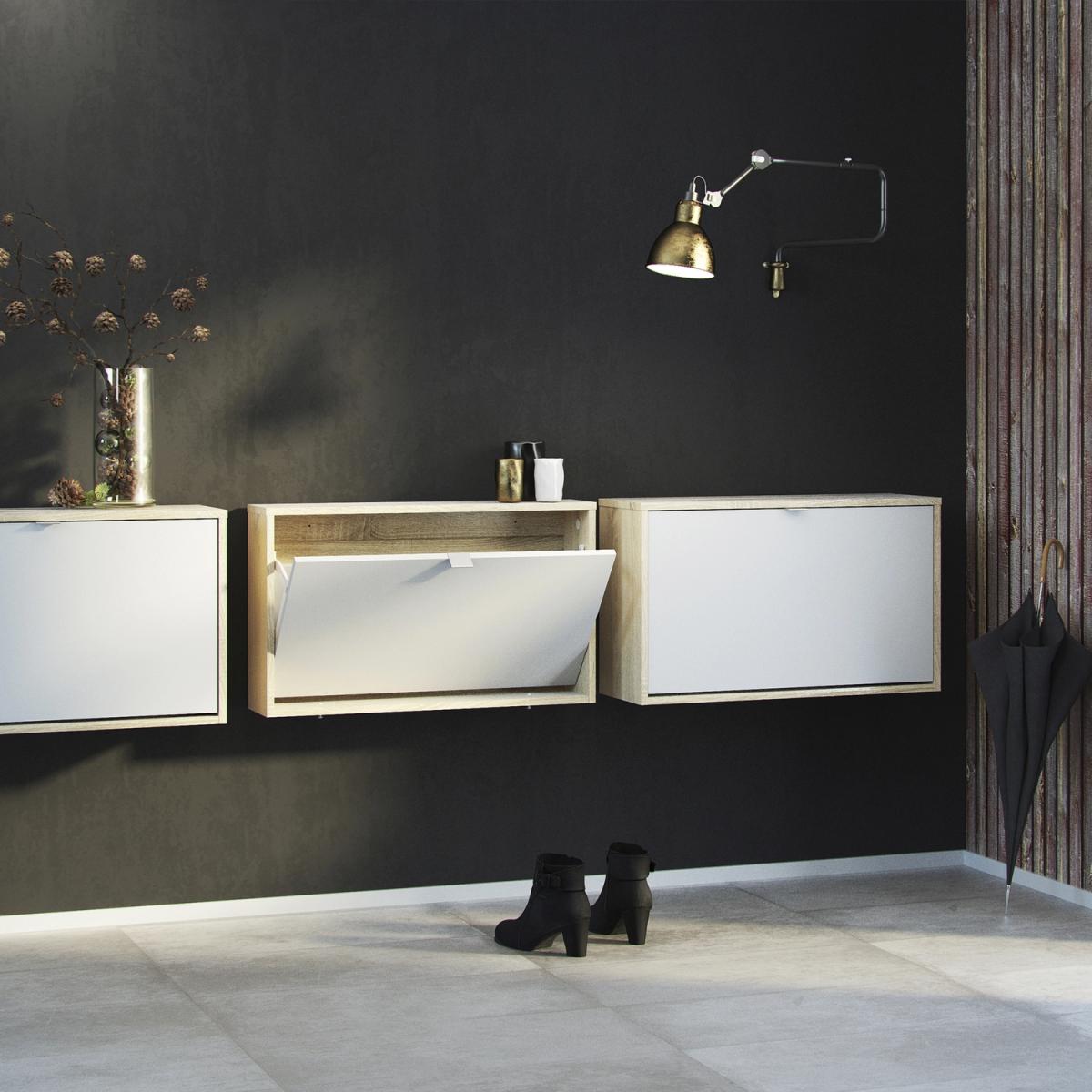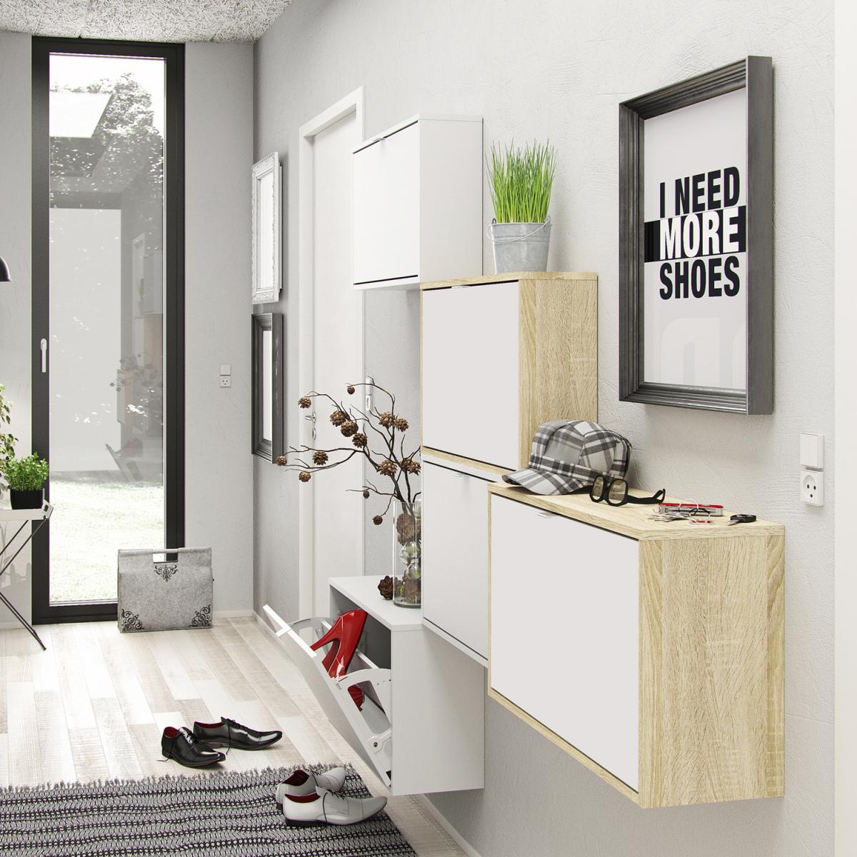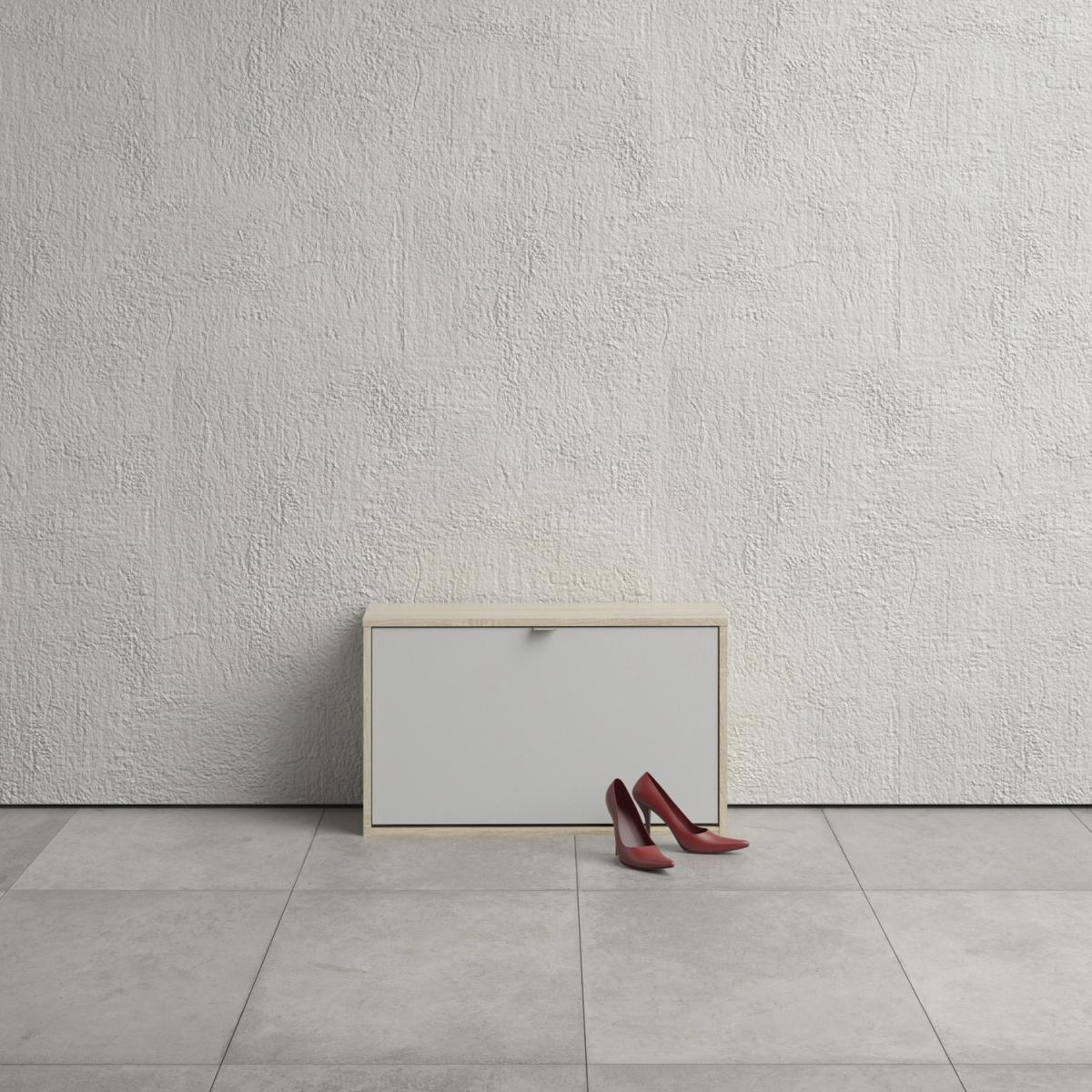 Quendlae Shoe Cabinet With One Tilting Door And Two Layers - Oak & White
