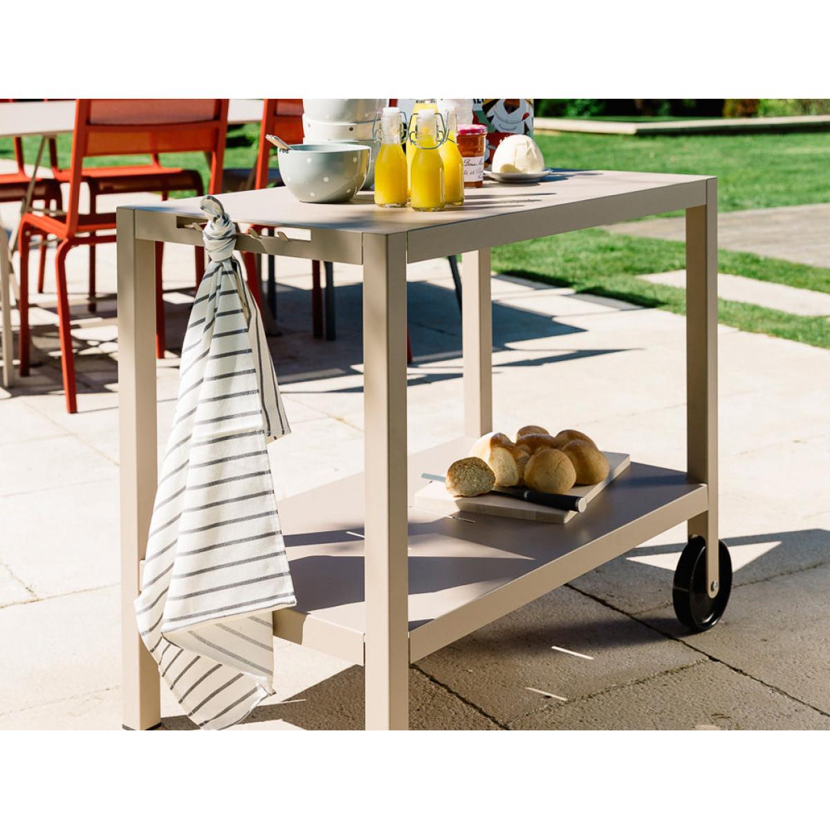 A new item of furniture that is both a multi-purposebar cart - a trendy, practical and universal piece with two wheelsfor added mobility. With its simple, graphic design,this piece is an absolute star at mealtimes.