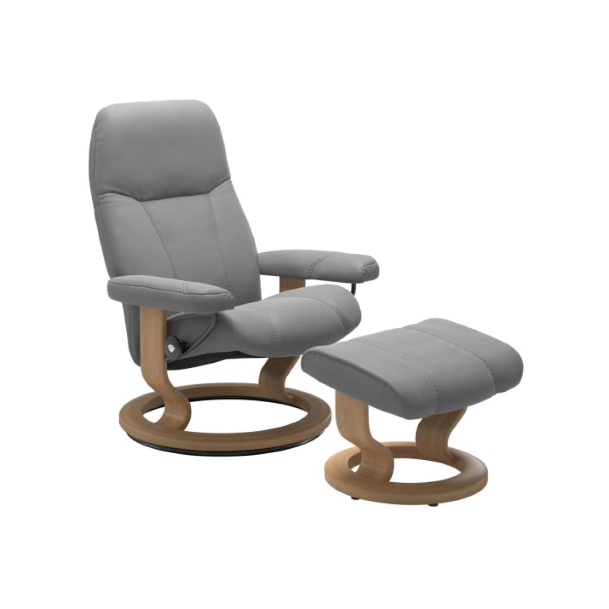 The Stressless Consul Chair is packed with features that have comfort in mind, whilst not ignoring the concept of style. With a choice of small, medium and large you can pick the right size to suit you. Choose from a wide selection of gorgeous leathers and 5 wood colours to create the perfect look to fit in with your living space décor. Stressless have designed the chair with a 360-degree swivel base, designed to adjust with only the slightest push of your feet requiring little effort. The amazing glide and plus system have been created to ensure you can create the perfect position to suit you, in the smoothest way. The Consul features the sleep function which allows you to adjust the headrest flat for an afternoon snooze. The included footstool completes your Consul chair and will follow your movement when getting into position. The Soft polyurethane foam pad ensure optimum softness and comfort and is covered by a sumptuous soft polyester fibre. The base is made with laminated beech wood and has a two-stem design for stability and creating a smooth turning action. For total peace of mind, Stressless guarantee the internal mechanism on all recliners for a period of 10 years from the date of purchase. The 10 year guarantee covers the Plus-system and the internal metal frame, including the metal springs and gliding system. It does not cover damage to leather or woodwork or any faults or damage caused by the use of the product other than in accordance with the manufacturer's recommendations, as well as any faults or damage arising from any repairs made by any persons not authorised by the manufacturer. All screens vary in colour reproduction and whilst every effort has been made to display the colour as accurately as possible it is for guidance only. Please also bear in mind that leather is a natural product. No two hides are exactly the same and there may be subtle shade variation between pieces which is perfectly normal.