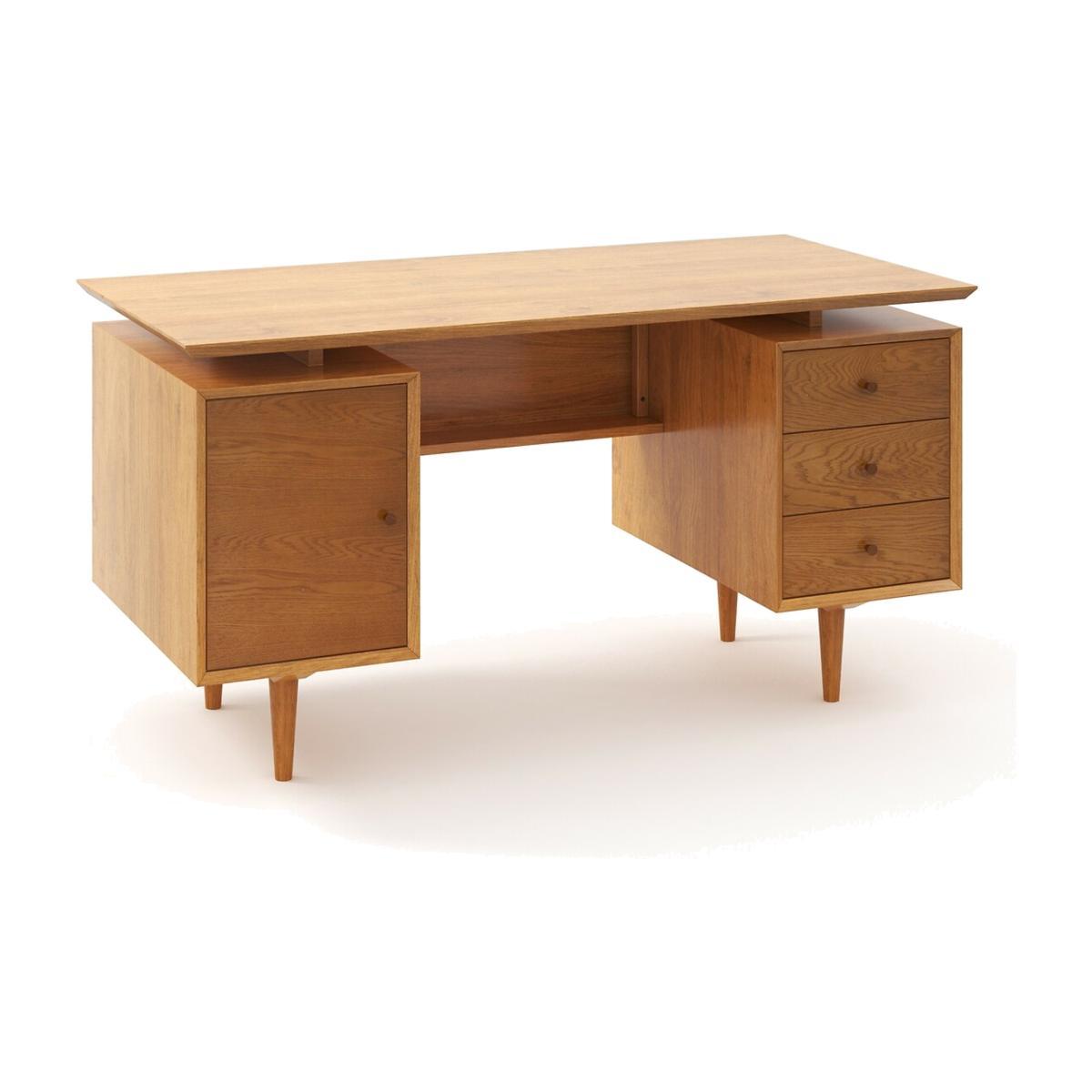 I love this desk for its clean, timeless appeal and warm oak finish, which pairs beautifully with both modern and traditional interiors. It works especially well in minimalist, Scandinavian, or mid-century styled spaces where natural materials are celebrated. Practical styling tips include keeping the surface clear with a few well-chosen accessories, such as a sleek lamp or a small plant, to maintain its elegant simplicity. The storage drawers and open compartments provide handy organisational space, making it an ideal choice for home offices or study nooks. Its versatile design means it can easily blend into different rooms, adding a subtle touch of sophistication without overwhelming the space.