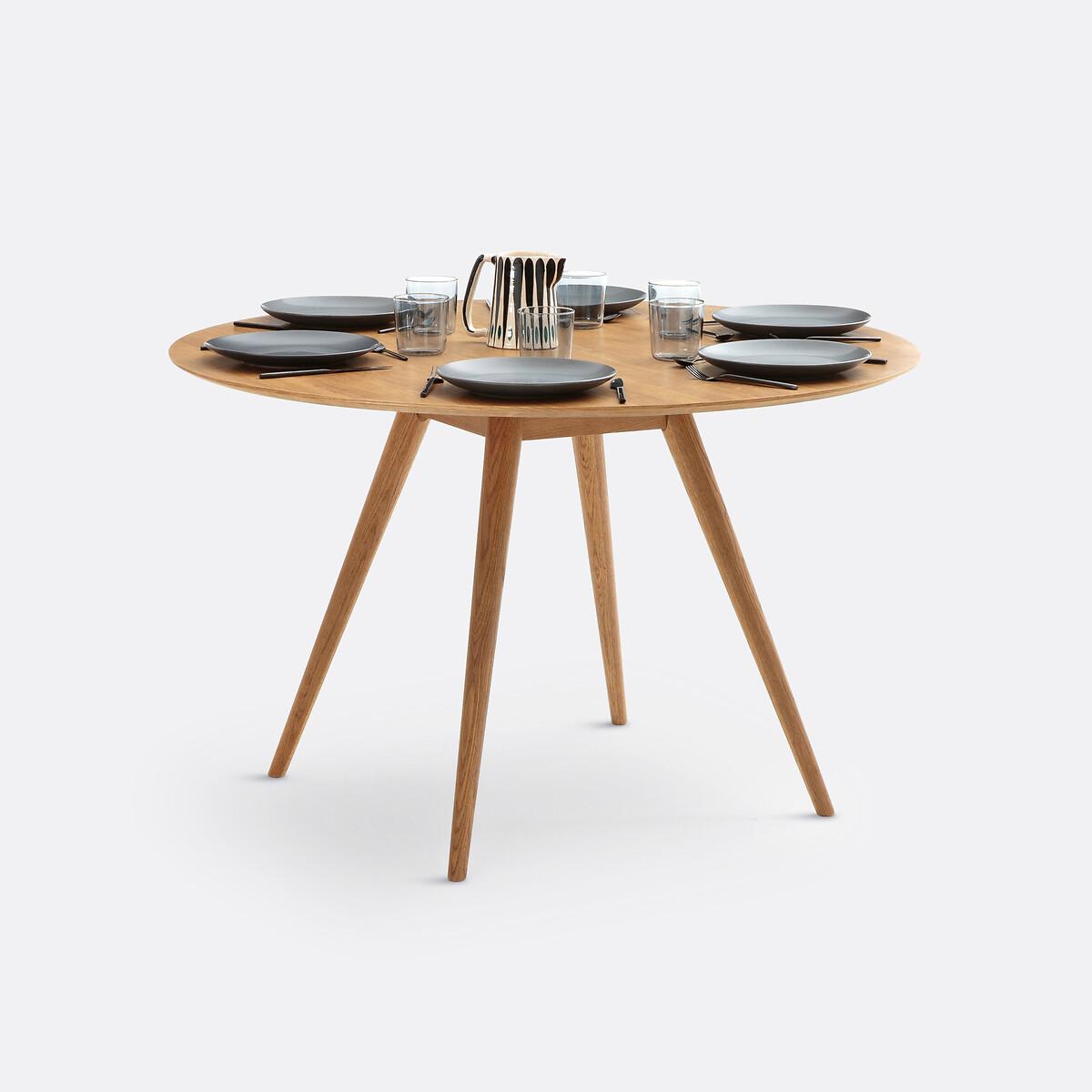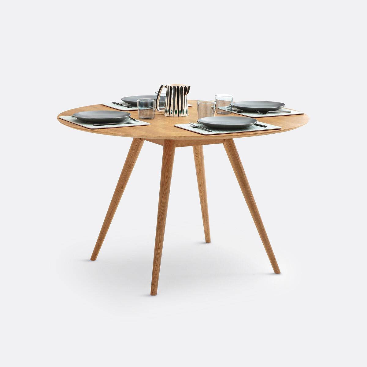 The Quilda vintage style 4-6 seater dining table. This charming vintage-style table accommodates up to 6 people for dinner. Product Details • Seats 4-6. • Round table top with bevelled edge. • Tapered legs. • MDF table top with medium oak veneer and nitrocellulose lacquer finish. • Solid oak legs, nitrocellulose varnish finish. • Assembly: Approximately 1 hour, 2 people (minimum)Care instructions • To protect your table, consider trivets, coasters and placemats. Dimensions • Diameter 120cm • H75cmDelivery:. Assembly required. Available for home delivery. Note! Please check that all access points are large enough to accommodate your delivery (doors, stairs, lifts).Parcel dimensions and weight:1 parcel126 x 16 x 126cm32kg