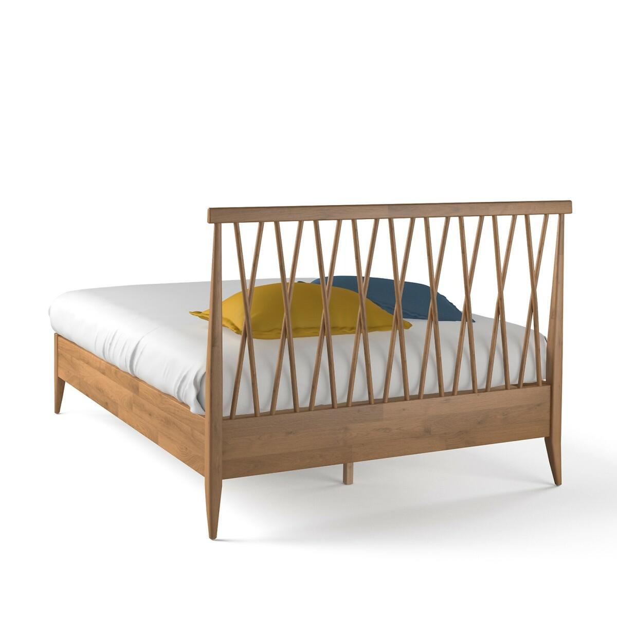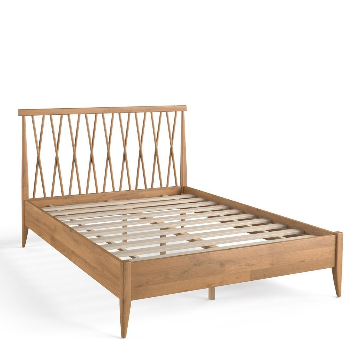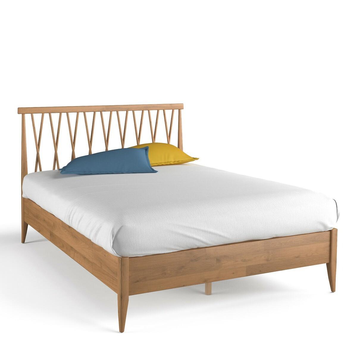 I love this solid oak bed for its clean lines and understated style, making it a versatile piece that works well in both modern and Scandi-inspired interiors. Its natural wood tone adds warmth and texture, creating a cosy yet sophisticated aesthetic. Styling tips include keeping the bedding neutral for a calm vibe, or adding colourful or textured cushions to introduce personality. This bed frame pairs beautifully with minimalist side tables and simple, soft lighting, and works well in both spacious master bedrooms and more compact guest rooms where its streamlined silhouette helps maximise space. Overall, it’s a timeless piece that provides both durability and style, making it a great focal point for a well-designed bedroom.