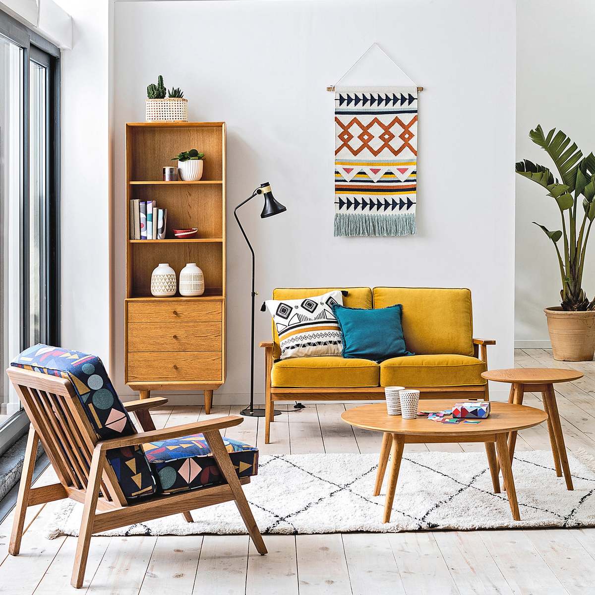 I love the vintage edge of this coffee table; its round shape and tapered legs give it a timeless, mid-century feel that works well in both contemporary and eclectic spaces. It’s versatile enough to sit in a variety of interiors - from minimalist living rooms to more relaxed, boho setups. For styling, consider keeping the surface clear with a statement piece like a vase or a tray, and add layered textures with soft throws or cushions nearby. The natural wood finish also pairs beautifully with muted palettes or bold colours, making it a flexible piece that can anchor your whole room’s look. Just a tip: in smaller spaces, it’s best to style it with a few useful accessories to keep it uncluttered.