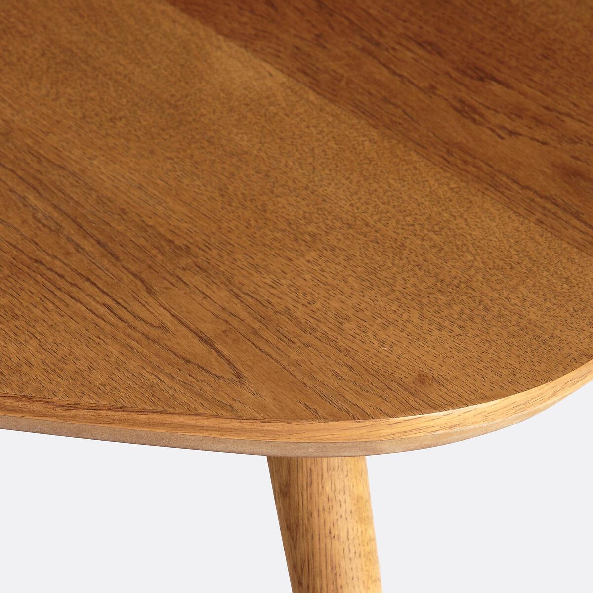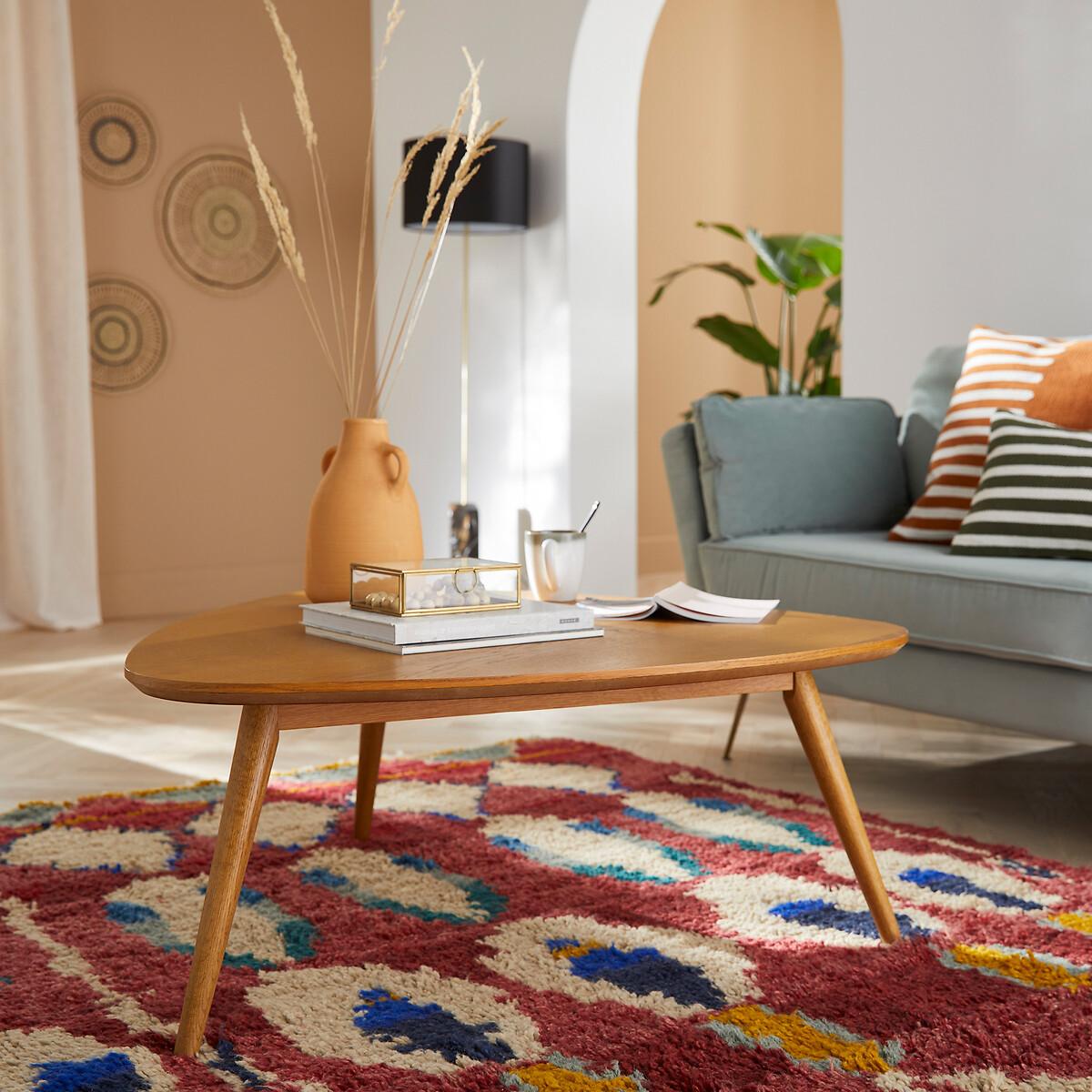 I often reach for this vintage‐style oak coffee table when I want a low-key, mid-century twist in a living room. Its soft triangle shape and tapered legs suit both Scandi-leaning schemes and more eclectic spaces, while the warm oak tone pairs effortlessly with muted rugs, leather armchairs or even industrial accents. For styling, keep a minimal stack of design books and a sculptural vase in the centre to accentuate its clean lines, then layer on a textured throw at one end for a lived-in feel. If you need extra storage, slide flat baskets underneath - it’s as practical as it is characterful.
