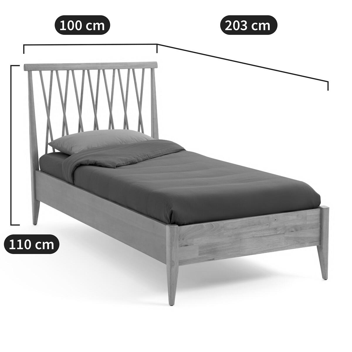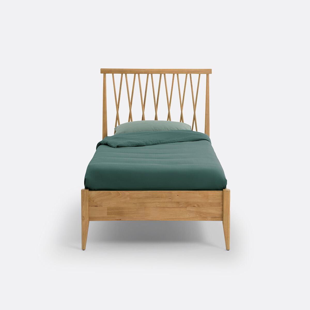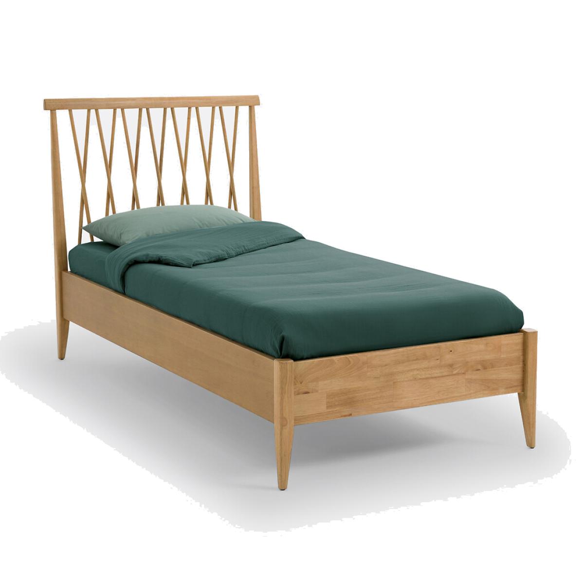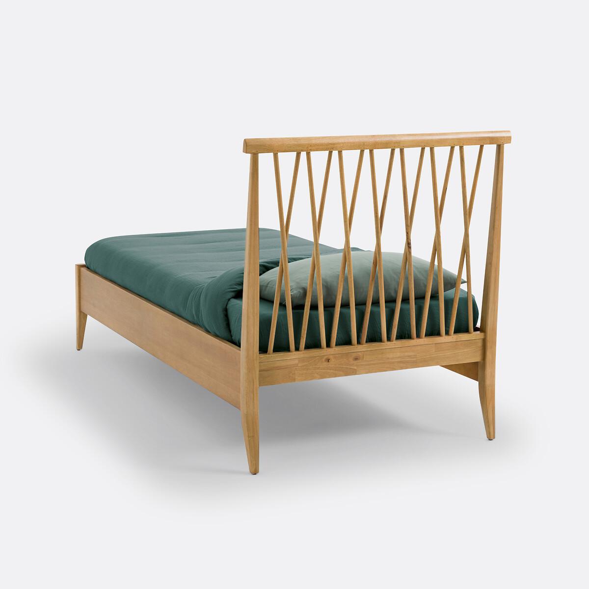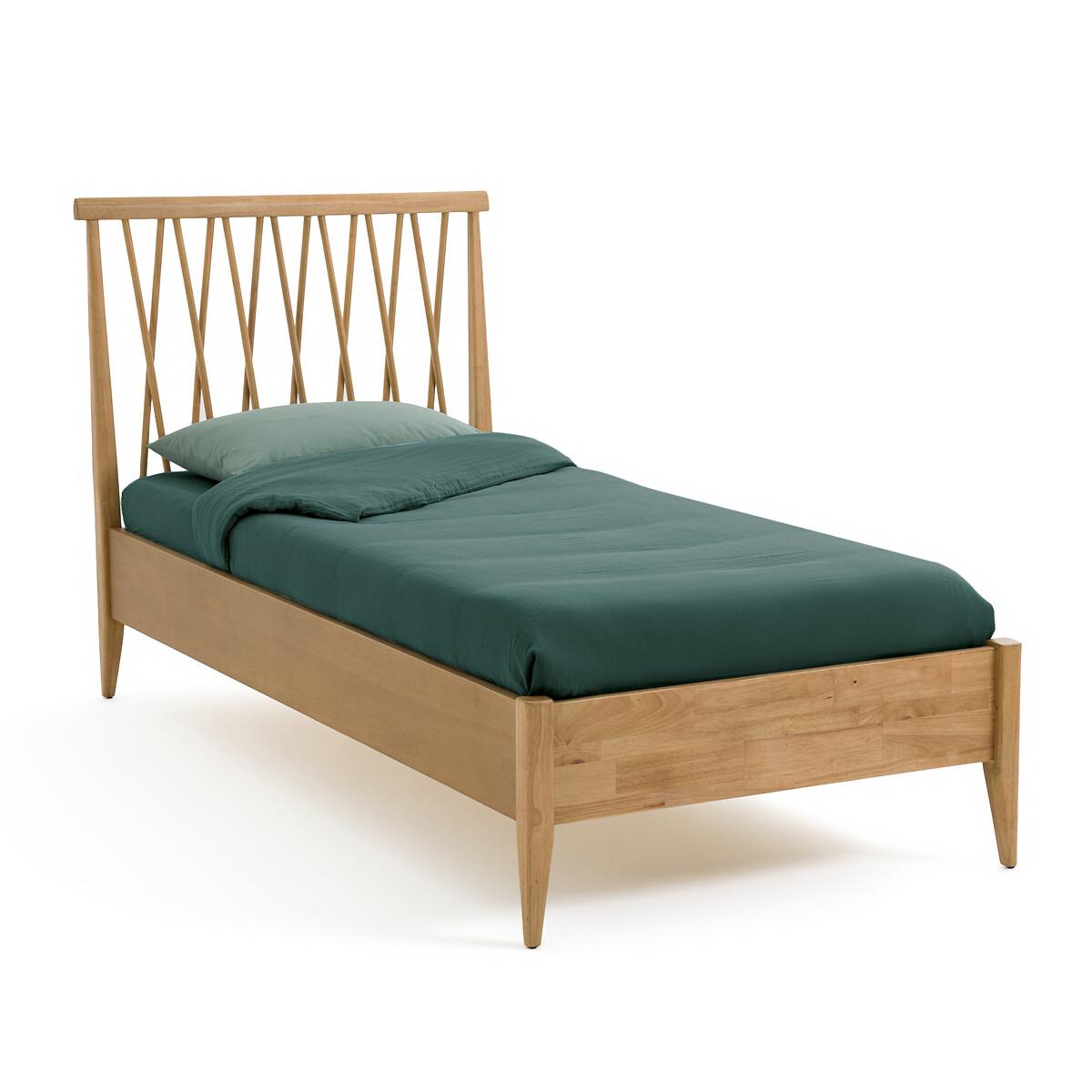 Quality finishes, simple and balanced lines. Here is Quilda, a vintage-style bed. Designed by La Redoute Interiors. Product Details • Solid Hevea bed with nitrocellulose varnish finish • Criss-cross headboard • Supplied with slatted base • Single: Sleeping area 90 x 190cm. Quality: • This product complies with current safety requirements. Dimensions • Width: 100cm • Height: 110cm • Length: 203cmDelivery:. This product is sold ready to assemble. Note! Please check that all access points are large enough to accommodate your delivery (doors, stairs, lifts).Dimensions and weight of parcel2 parcels • L108 x H18 x D116.5cm. 22.5kg. • L142 x H14.5 x D22.5cm. 14kg.