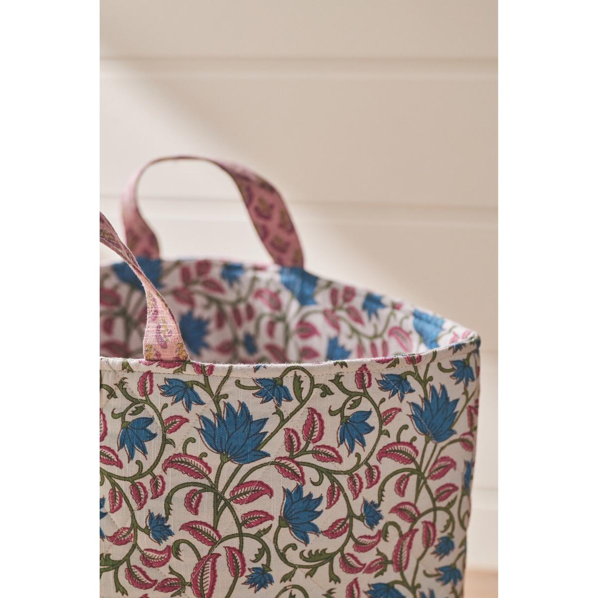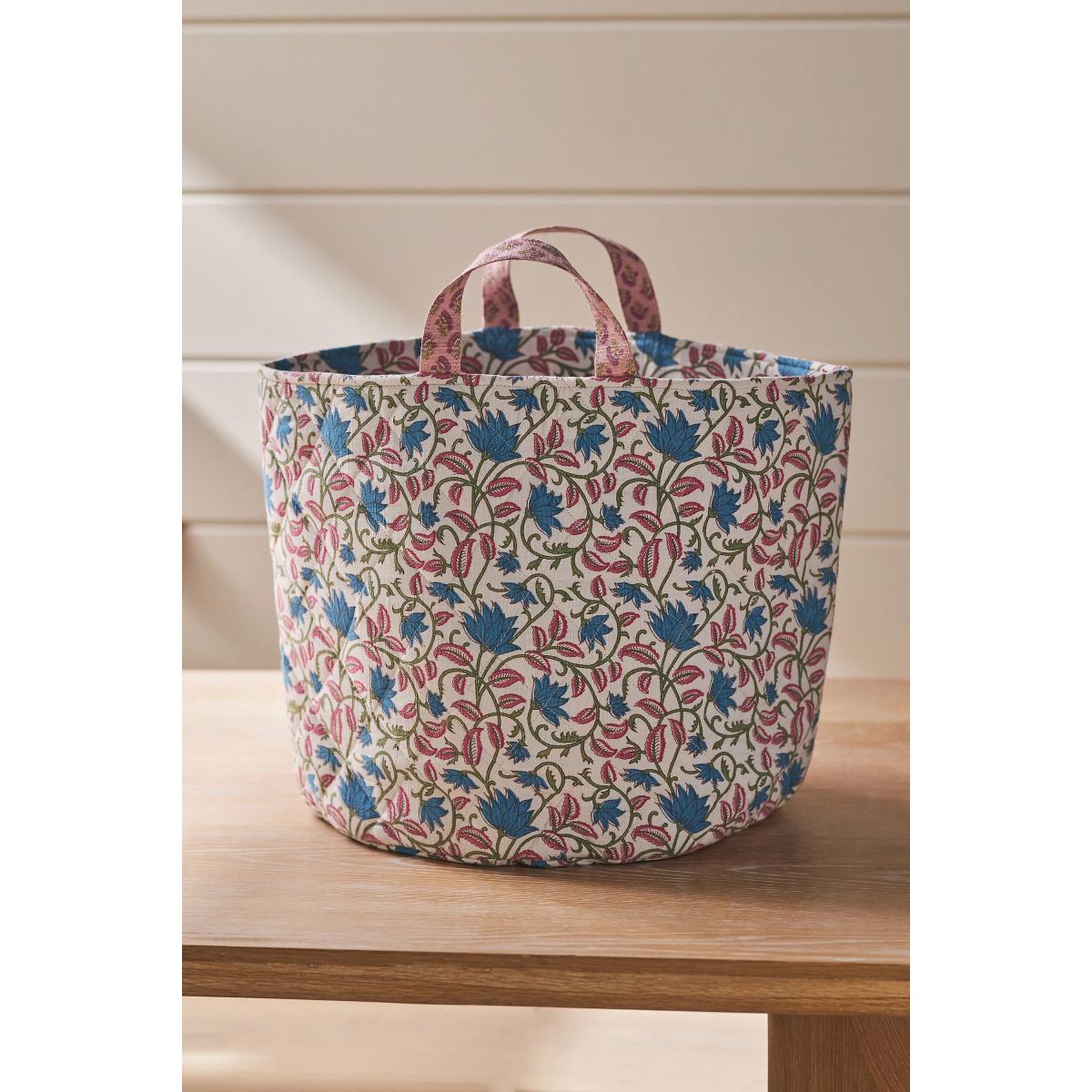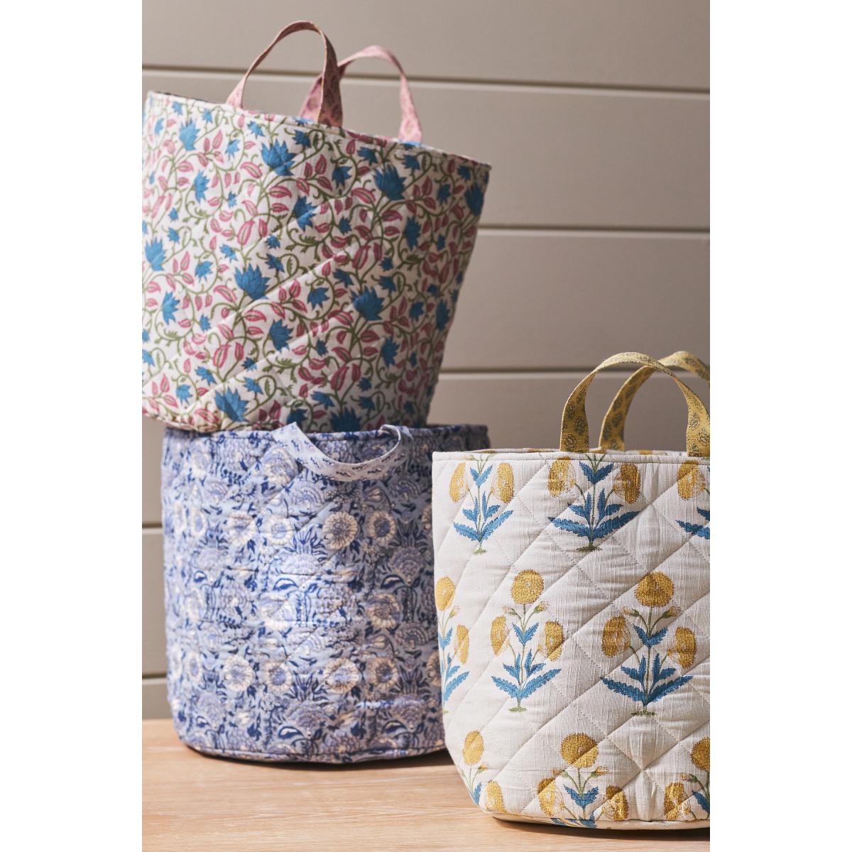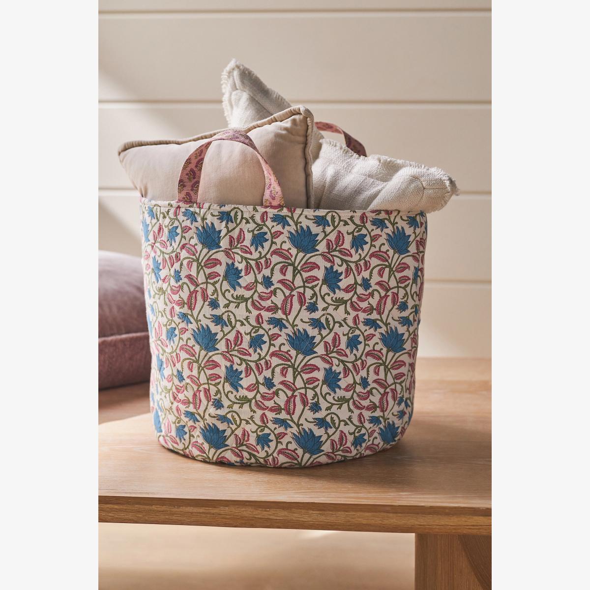 I love this basket for its colourful quilted block print, which adds a touch of handcrafted charm to any space. It works particularly well in casual, cosy interiors such as country-style or bohemian settings, where its tactile pattern can complement layered textures and earthy tones. Practical styling tips include using it for storing throws, toys, or laundry in living rooms or bedrooms, keeping things organised yet accessible. Additionally, its versatile shape makes it easy to tuck into corners or use as a decorative element on open shelving, making it both functional and visually appealing.
