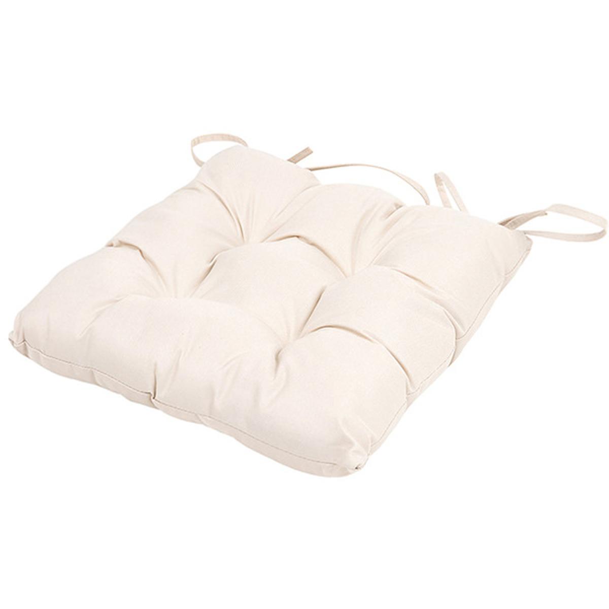 This quilted garden chair cushion is designed to make dining outside comfortable and stylish. The water-resistant cover is filled with a soft fibre cushion. Suitable for use outdoors and easy to wipe clean. The cushion features two ties at the back to secure it to a seat.