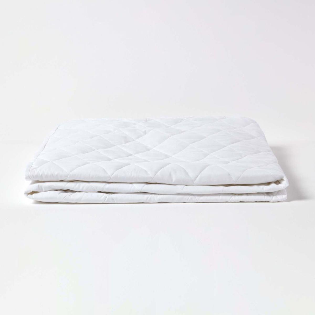 A deep quilted waterproof mattress protector with super soft cotton rich top. This luxury waterproof protector will help keep your mattress clean and dry as well as adding an extra layer of comfort to your sleep. Protecting your mattress from stains, spills and accidents it is ideal for use by the elderly, pregnant women, those going through menopause and for anybody who suffers from night sweats. This super soft topper with cotton rich quilted top is filled with a thick 150 GSM polyfibre twice the thickness of a standard topper and will remain soft and quilted even with regular use. A robust protector, with a durable noiseless PVC waterproof barrier that will not rustle and will not keep you awake as you move in bed. This quilted protector has a 30 cm extra deep fully elasticated fabric fitted skirt, keeping it firmly in place and can be used on standard and extra deep mattresses. A hypoallergenic mattress protector that is suitable for all, including allergy sufferers. Easy to care for our waterproof mattress protectors are easy to keep clean and can be washed at home. Expertly crafted our bedding is OEKO-TEX certified, with all fibres and fillings tested to ensure they are free from toxins and chemicals. Exclusively designed by Homescapes the quilted waterproof collection includes all you need to protect your bedding and help you get the best nights sleep. The range includes waterproof mattress protectors available in UK, European and cot bed sizes.