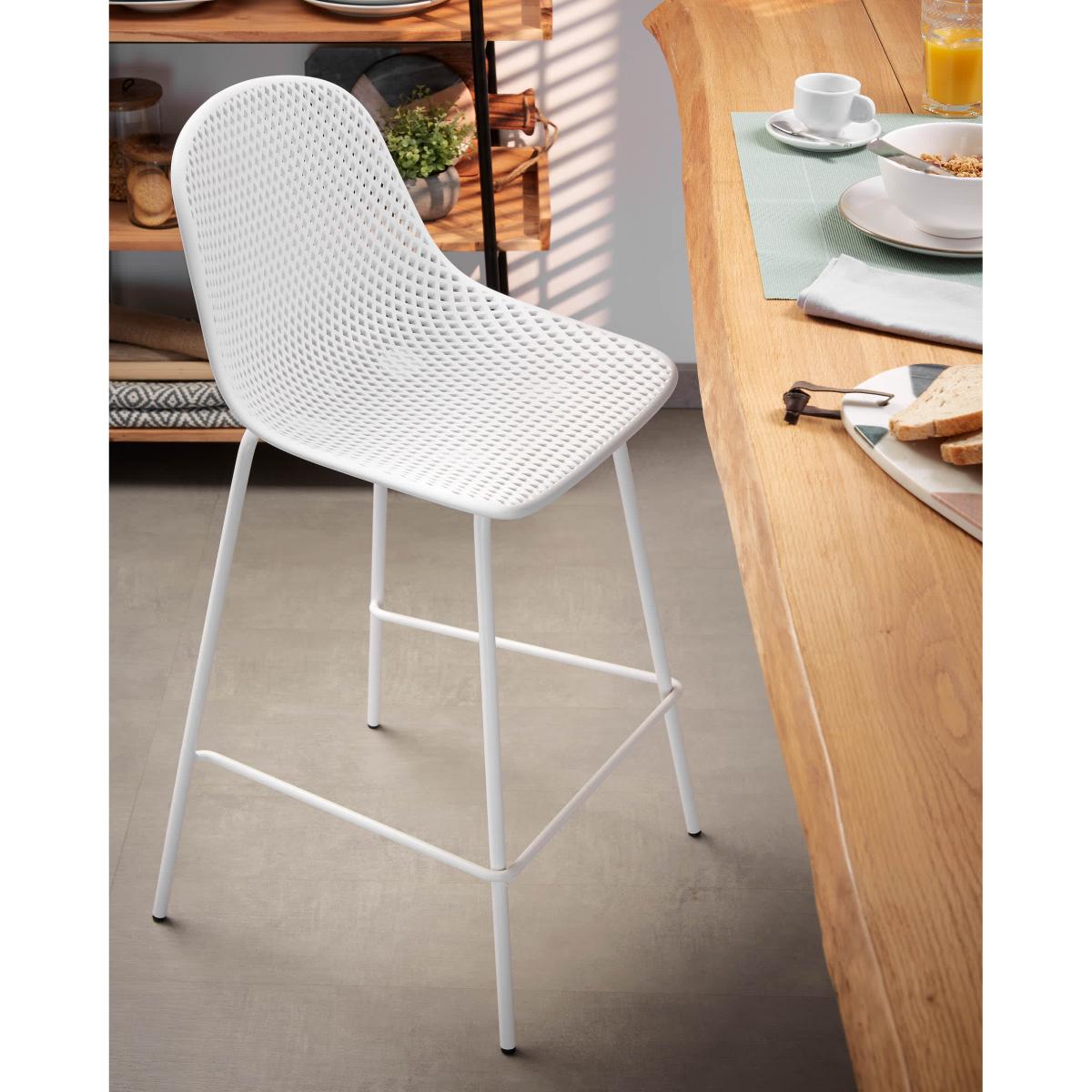 I’m a fan of this 75 cm white outdoor stool for its clean lines and lightweight feel - it’s easy to move around and simple to hose down after a busy weekend. It sits particularly well in modern, Scandi or coastal schemes where a pared-back look is key, but you can just as easily pair it with timber-toned bar tables for a touch of warmth. For styling, group two or three around a tall cocktail table or use one as an extra seat by the fire pit. A monochrome outdoor cushion will soften the seat, and a matching plant stand or side table helps pull the area together without fuss.