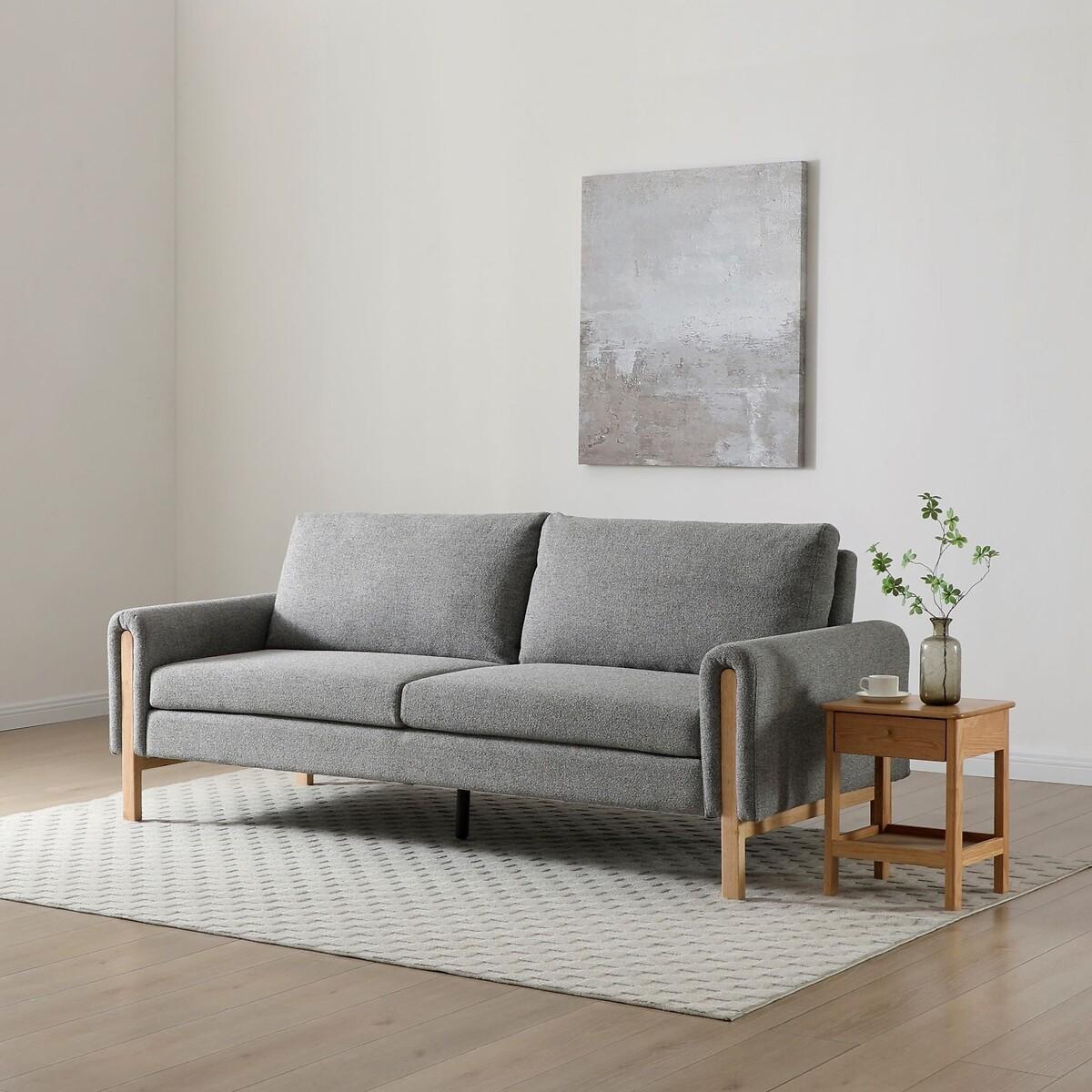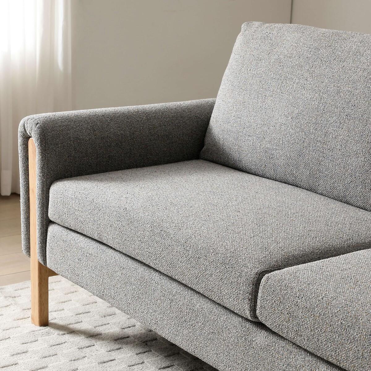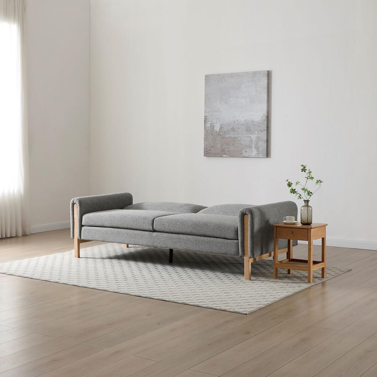 A sofa by day, bed by night, this mid-century-inspired sofa bed blends style with practicality. Designed with a natural wooden frame and upholstered in a beautifully tactile textured weave, it brings a warm, cosy feel to any space. The deep padded, tufted back and pocket-sprung seat offer the perfect balance of comfort and support, whether you're lounging or catching up on sleep. The easy click-clack mechanism makes transforming it from a sofa to a comfortable double bed effortless--ideal for overnight guests or cosy nights in. Finished with exposed wooden legs, it’s a stylish, space-saving solution for modern living rooms, home offices, or guest rooms. Product details • 3 seater sofabed • Easy click-clack mechanism folds down to create a sleeping space suitable for two people • Soft textured weave upholstery - cosy & on-trend • Natural wood frame • Pocket sprung seat for added support • Foam filled seat • Foam and Fibre filled backs • Medium comfort level - perfect for everyday use & occasional guests • Partial assembly required (legs/feet only) • Care advice: specialist upholstery cleaner recommended • 12 month manufacturers warranty. Product Composition Frame - Wood Fabric - 100% Polyester. Seat - Fabric + Foam + Metal Pocket Springs. Product Dimensions • Total Product - 221 cm x 88 cm x 90 cm , Weight - 59 KG • Seat Height: 47 cm • Seat Depth: 52 cm • Seat Width: 187 cm • Arm Height: 62 cm • Clearance to floor : 20 cm • Back Height: 43 cm • Sleeping Area Width - 97 cm • Sleeping Area Length - 190 cm Parcel 1 Packaged Dimensions - 195 cm x 116 cm x 30 cm, Weight 46 kg Parcel 2 Packaged Dimensions - 107 cm x 88 cm x 20 cm, Weight 22 kg. This product will be dispatched by one of our trusted suppliers. You’ll be contacted by their selected courier about your delivery.