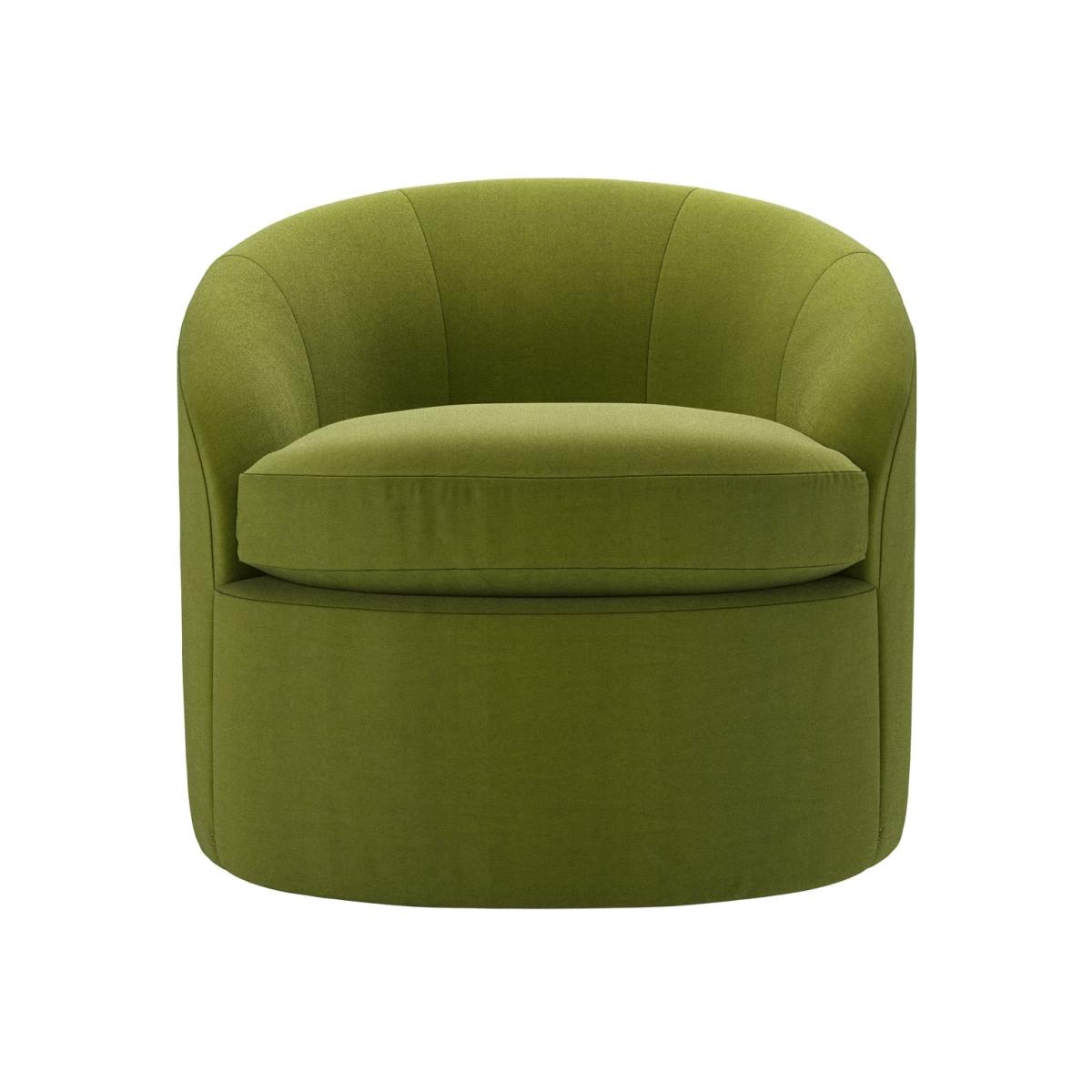 I love this armchair for its bold, rounded silhouette and fresh Vine Leaf hue, which instantly enlivens a space. It works especially well in contemporary or pared-back interiors where a pop of colour adds personality, but it can also be a striking accent in more traditional schemes. The organic cotton fabric is practical and eco-friendly, making it suitable for everyday use while maintaining a soft, inviting feel. For styling tips, pair it with neutral tones to let its colour shine or mix with other botanical or earthy shades for a cohesive, nature-inspired look. It’s a versatile piece that anchors a cosy corner or can act as a statement seat in a living room or reading nook.