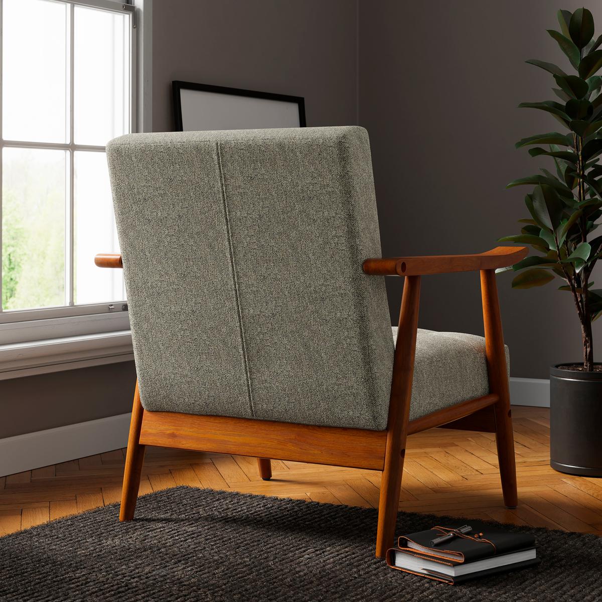 I love this chair for its versatile style and neutral tone, making it a great addition to both modern and retro-inspired interiors. Its textured weave and dark cream colour bring a cosy yet sophisticated touch, perfect for creating a welcoming seating area or accent spot. Styling tips include pairing it with warm wood furniture or soft textiles like throws and cushions to enhance its inviting feel. It works well in living rooms, reading nooks, or even a bedroom corner, where its compact size allows it to slot in seamlessly without overwhelming the space. For practical styling, consider placing it next to a small side table or adding a decorative floor lamp to create a functional, stylish nook.